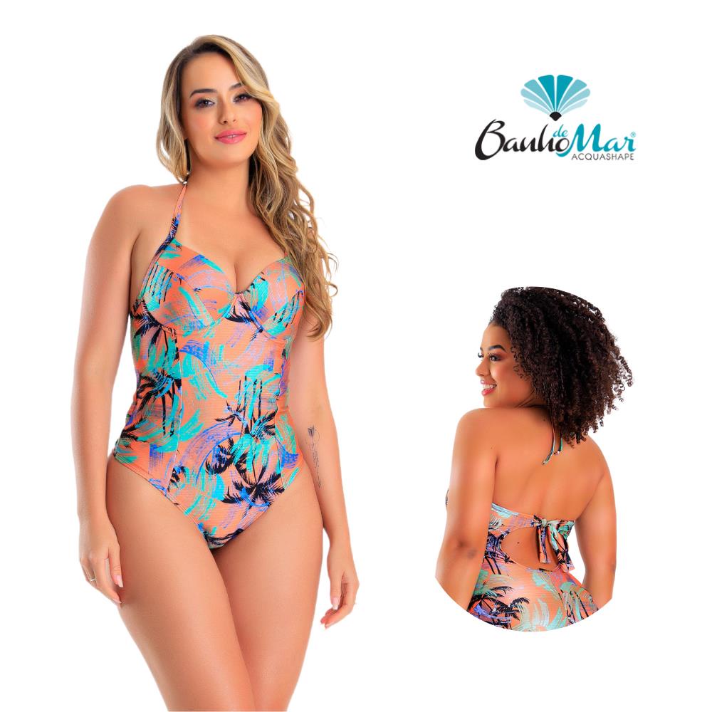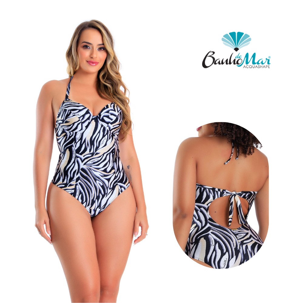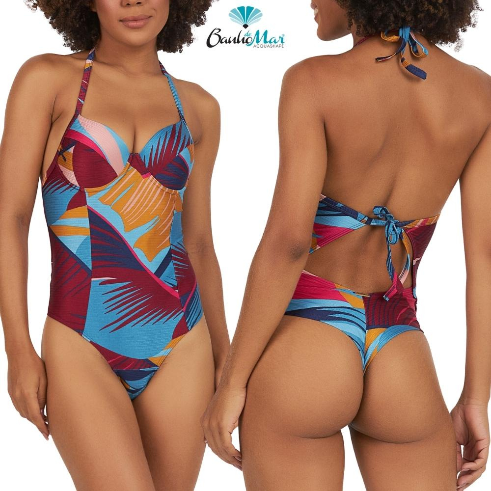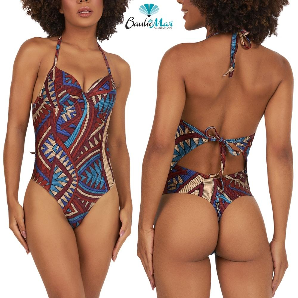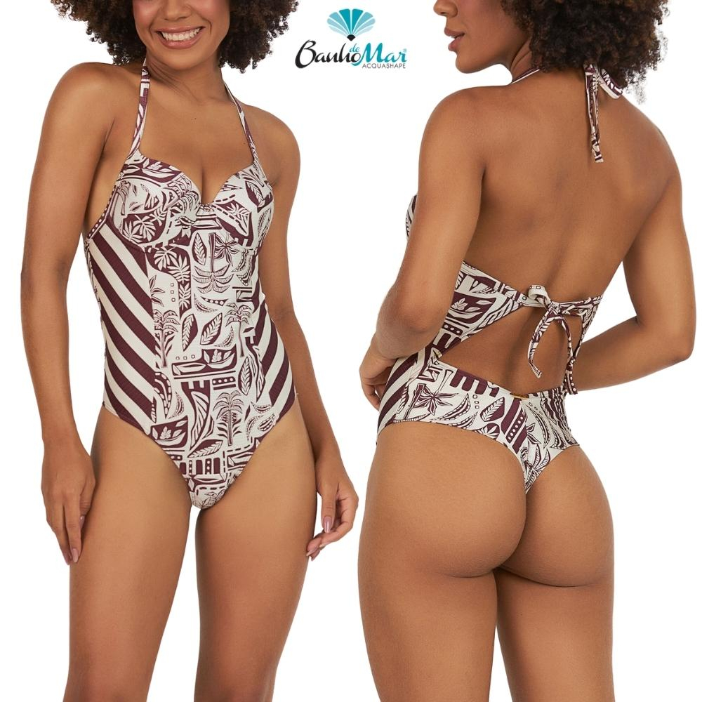 Maio Banho de Mar Alca Fina Com Bojo Zero Barriga Modela e Reduz Moda Praia Estampado Fio Dental