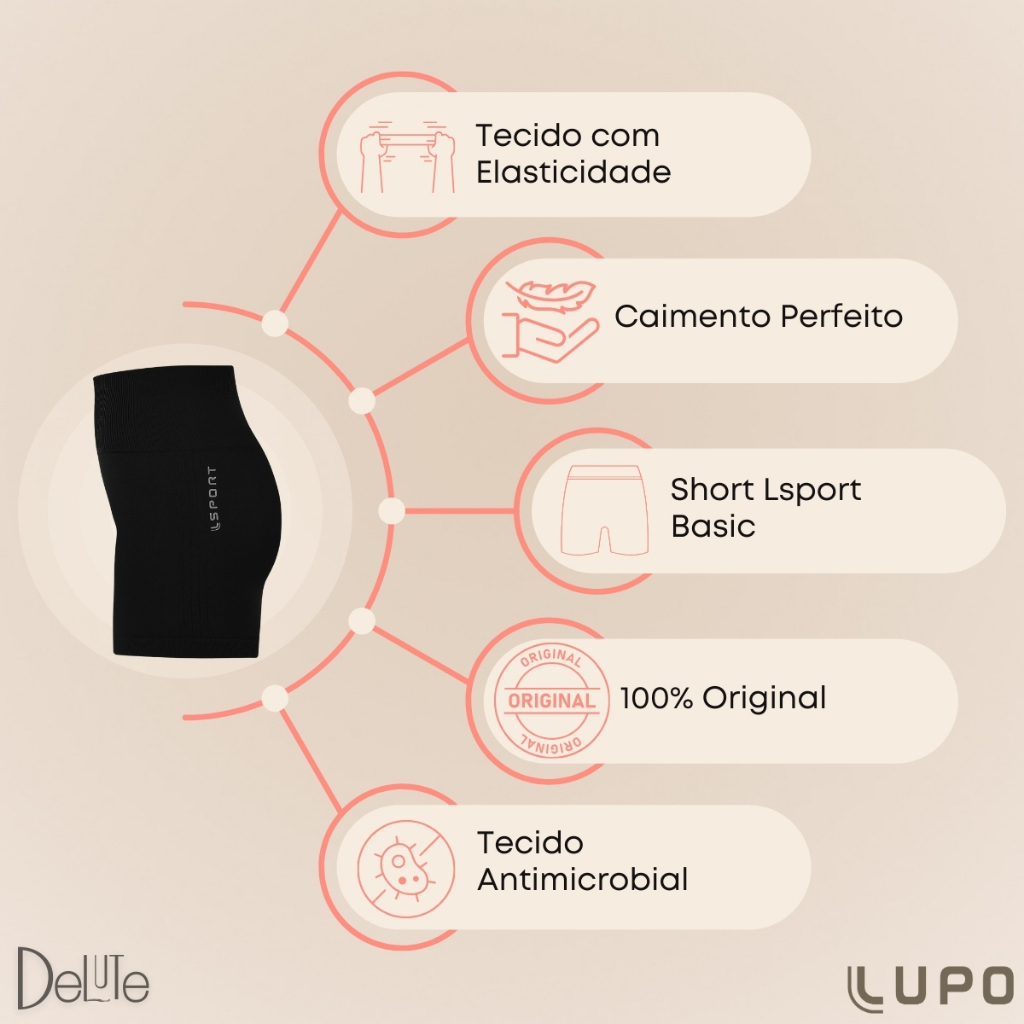 Short Fitness LSport Feminino Lupo Cos Com Borda Interna Com Silicone Sem Costura de Academia Basic