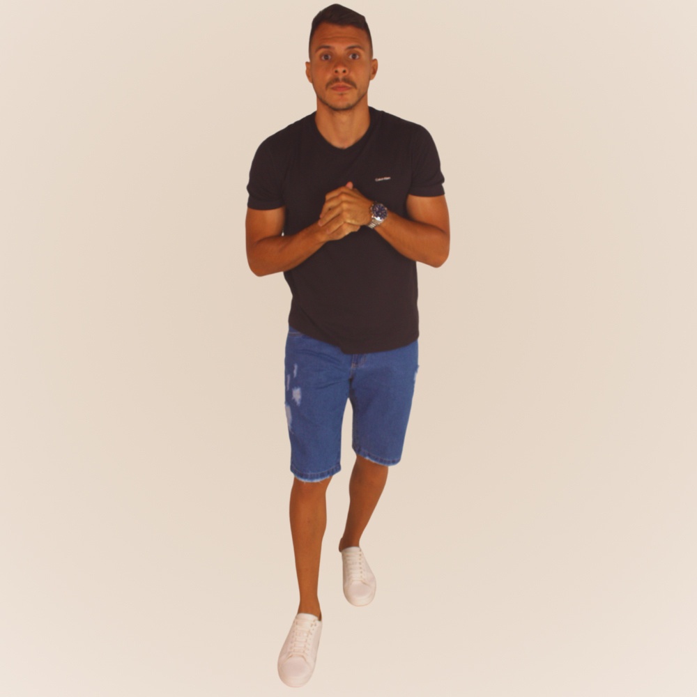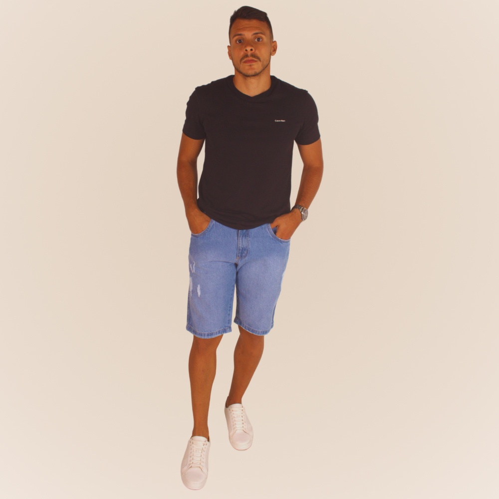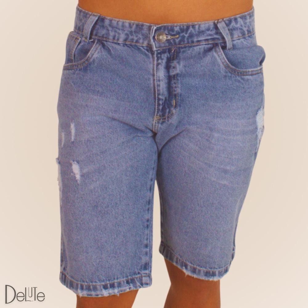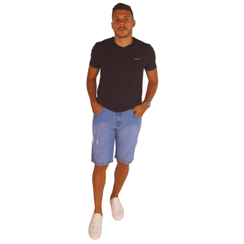 Bermuda Masculina Adulto Jeans Casual Modelo Destroyed Fashion Linha Premium Rasgada com Bolsos