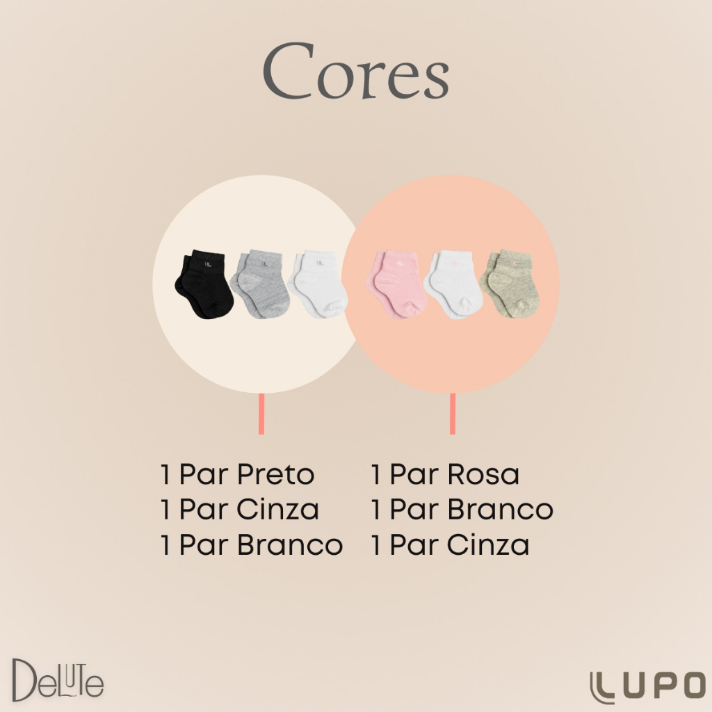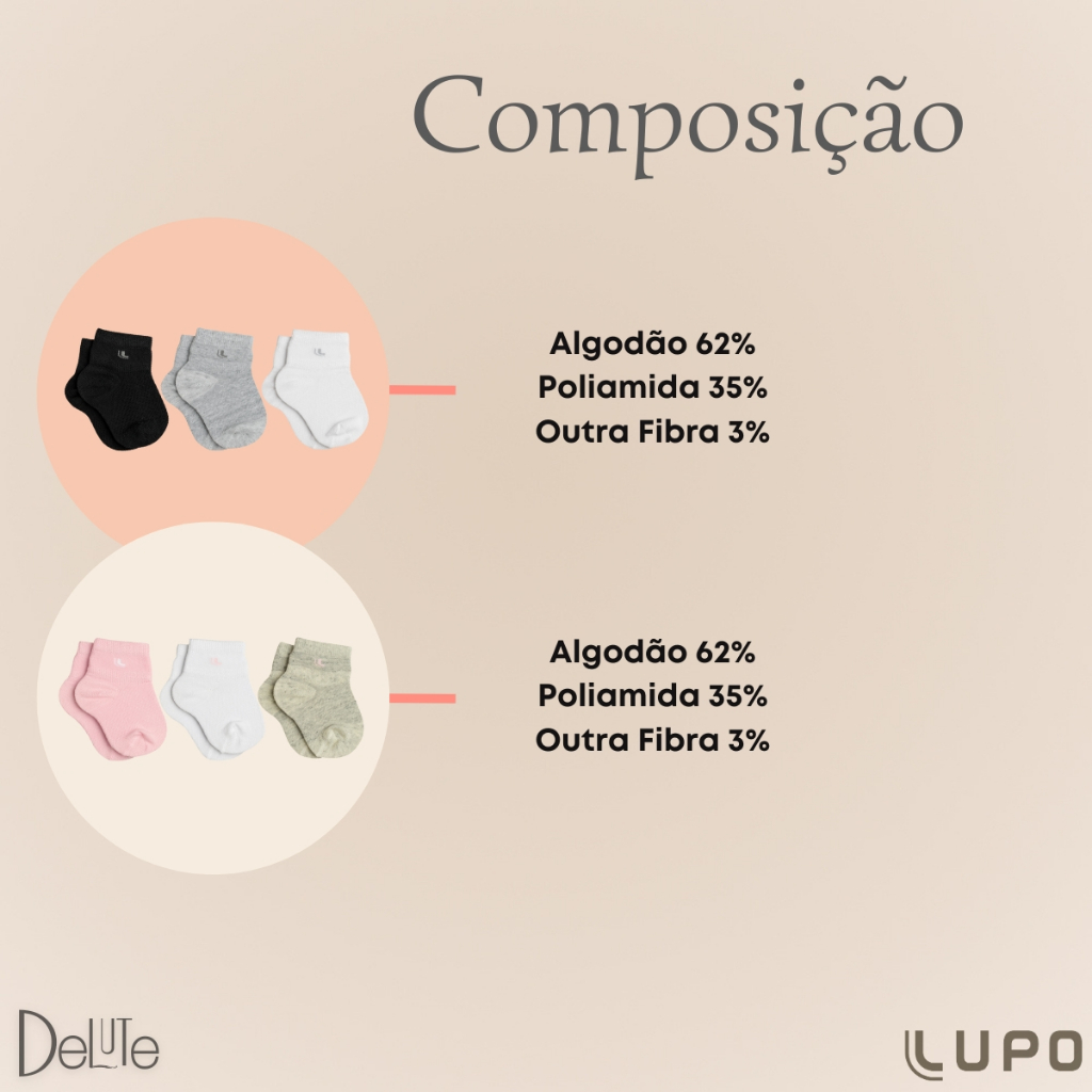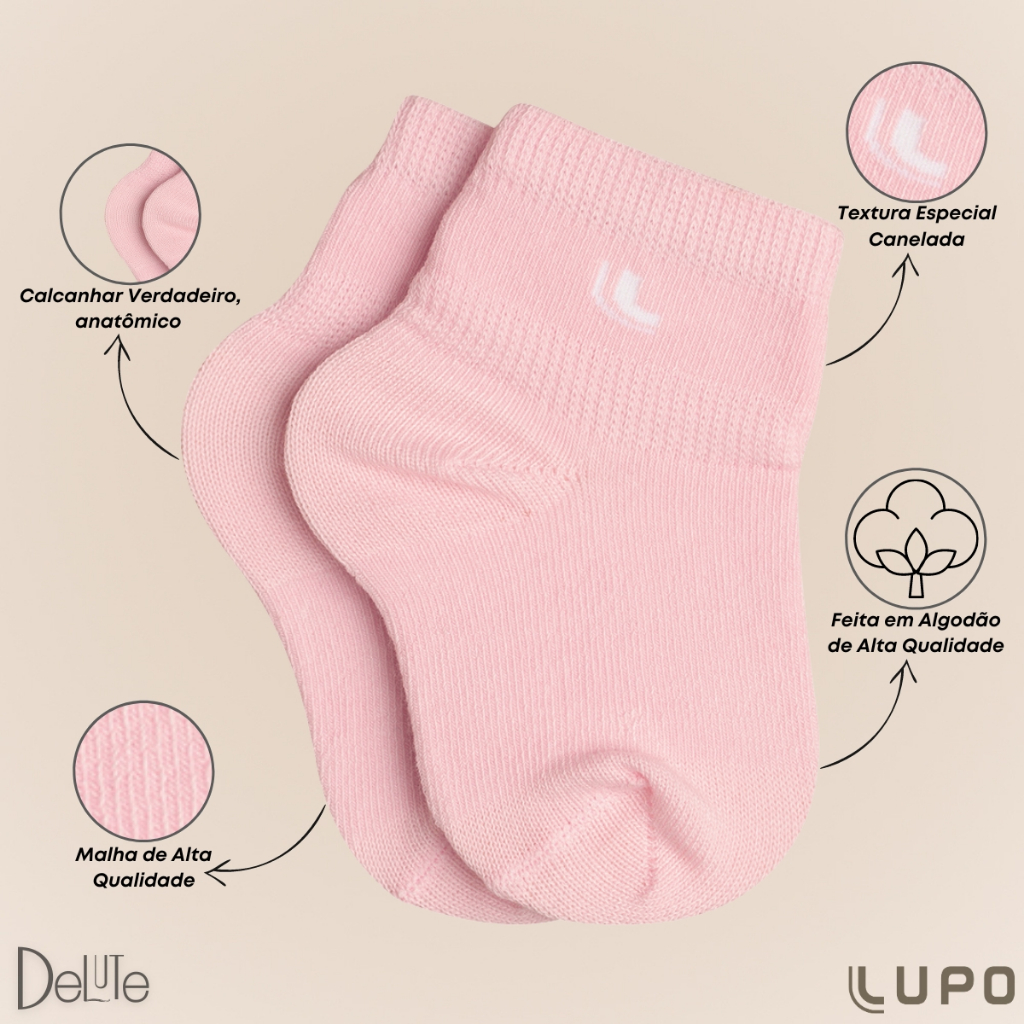 Kit com 3 Pares de Meias Lupo Baby Infantil Cano Médio em Algodão Lisa Básica Meninos e Meninas