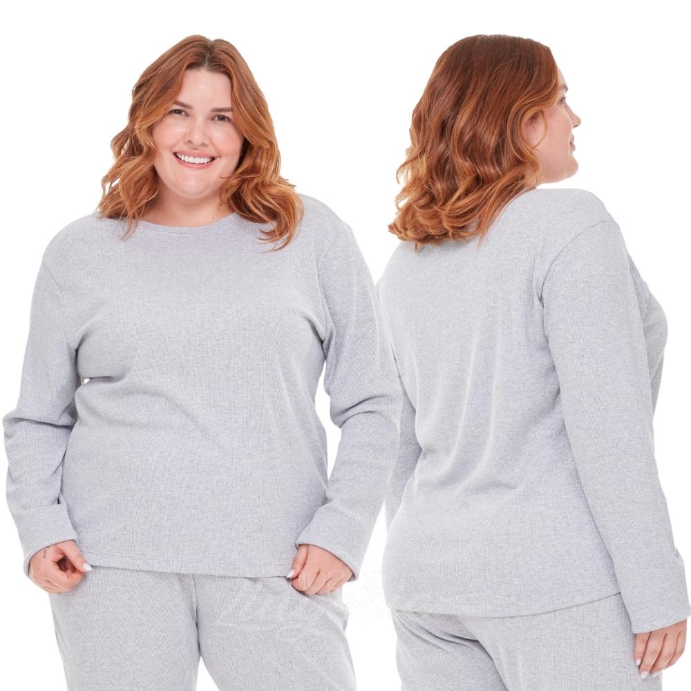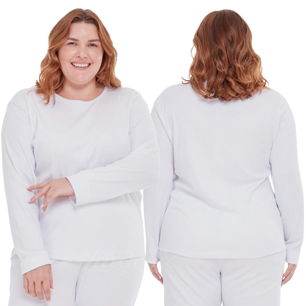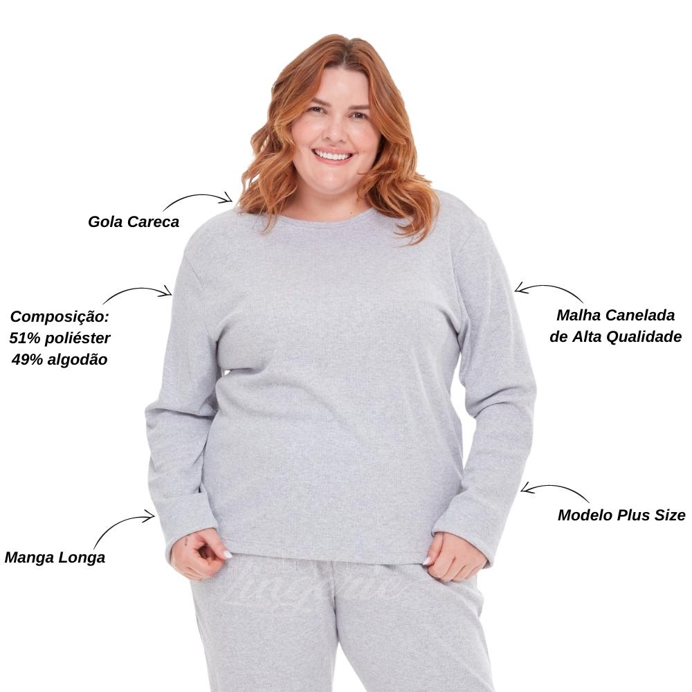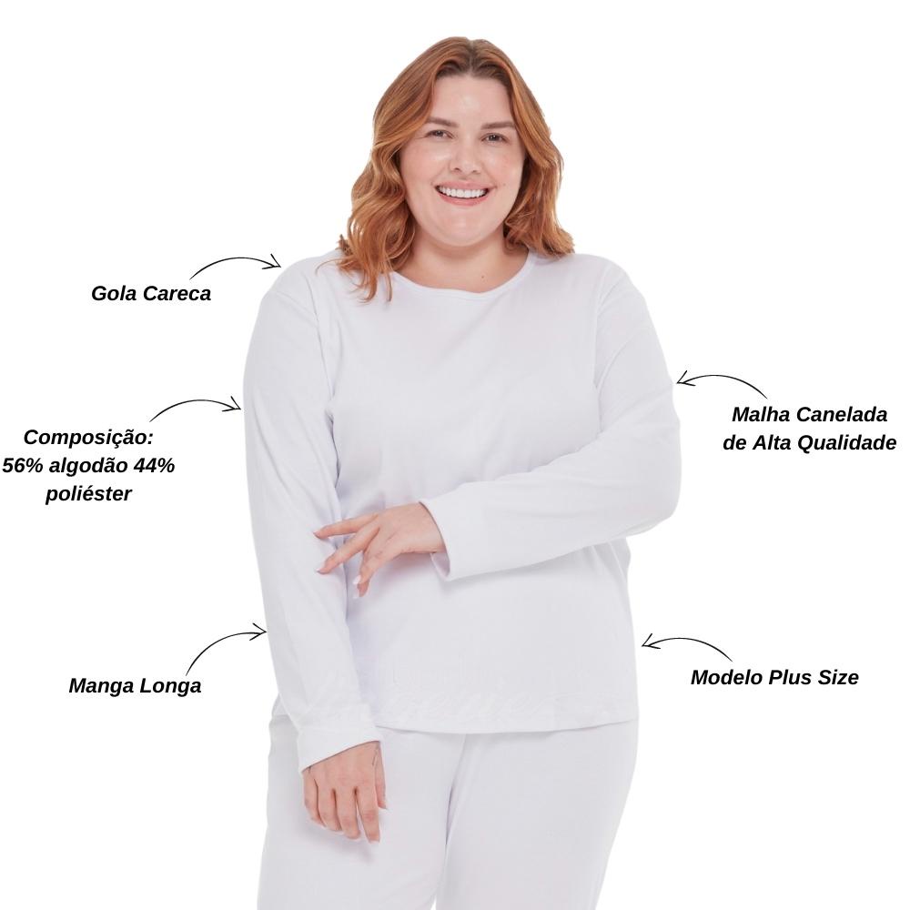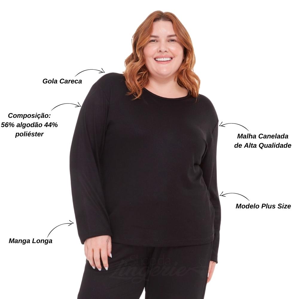 Blusa Plus Size Feminina Segunda Pele Manga Longa Tecido Canelado Confortavel Basico Gola Careca