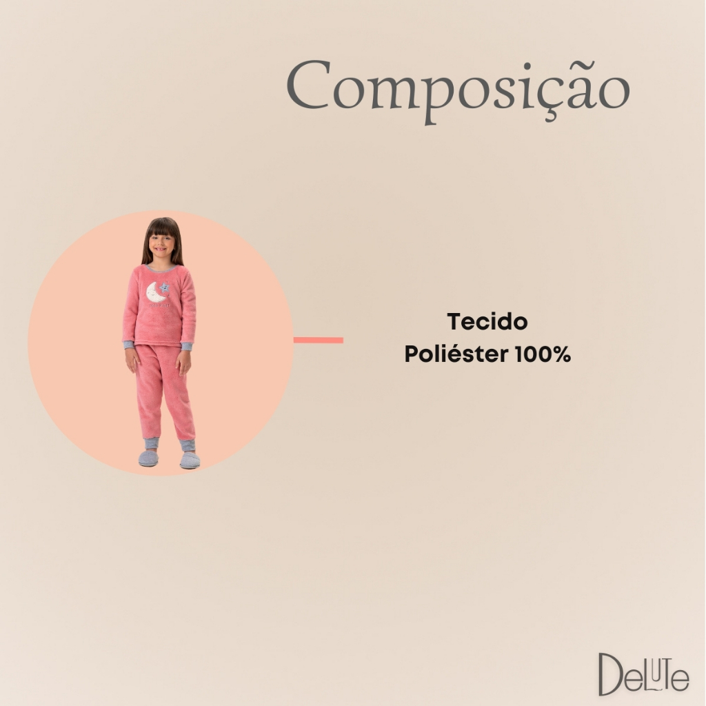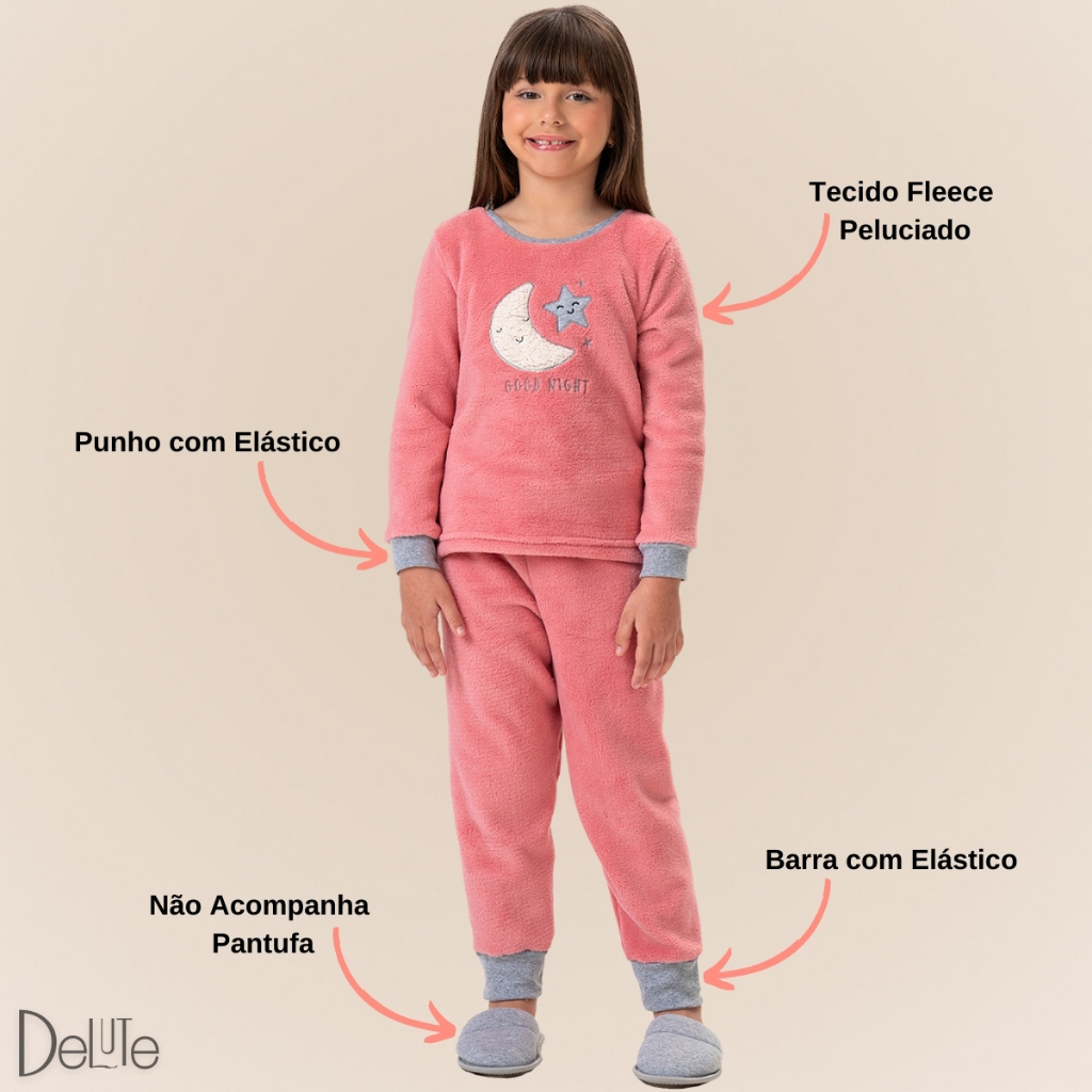 Pijama Feminino Infantil Manga Longa Fechado Fleece Peludinho Ted Estampado Confortável para o Frio