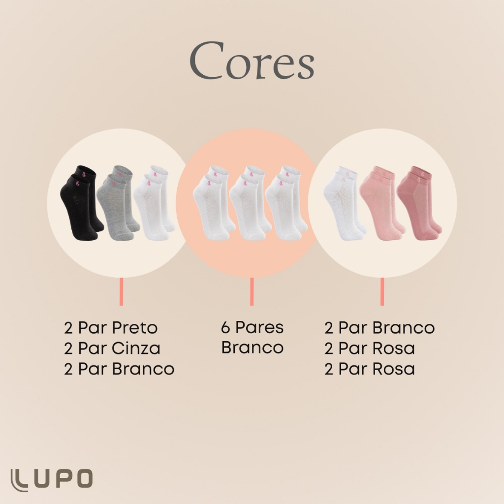 Kit 6 Pares De Meia Cano Curto Original Lupo Esportiva Feminina