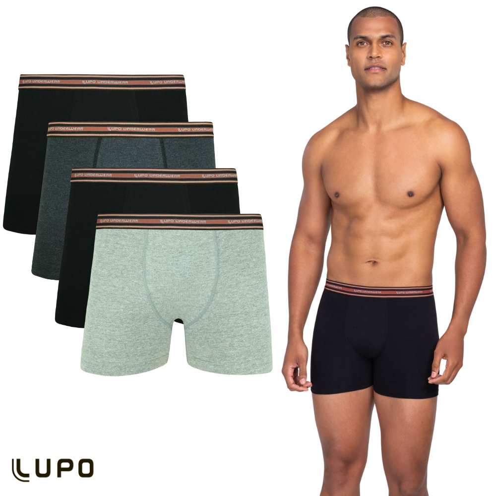 Kit Com 4 Cuecas Boxer Box De Algodao Cotton Lupo Original Modelo Basico Liso - Pronta Entrega