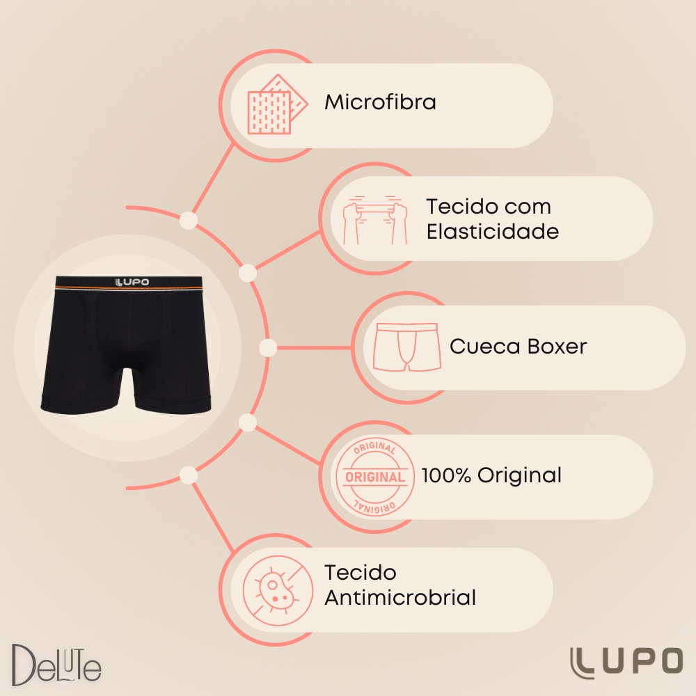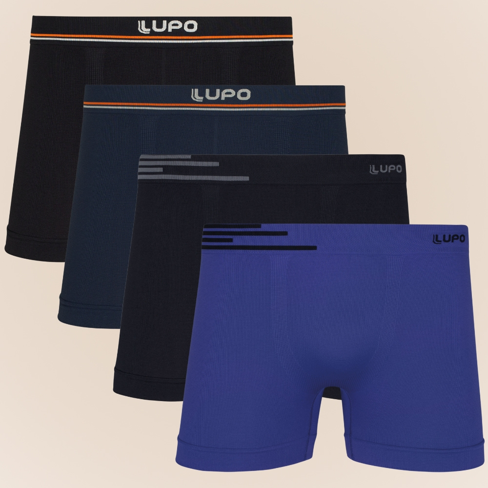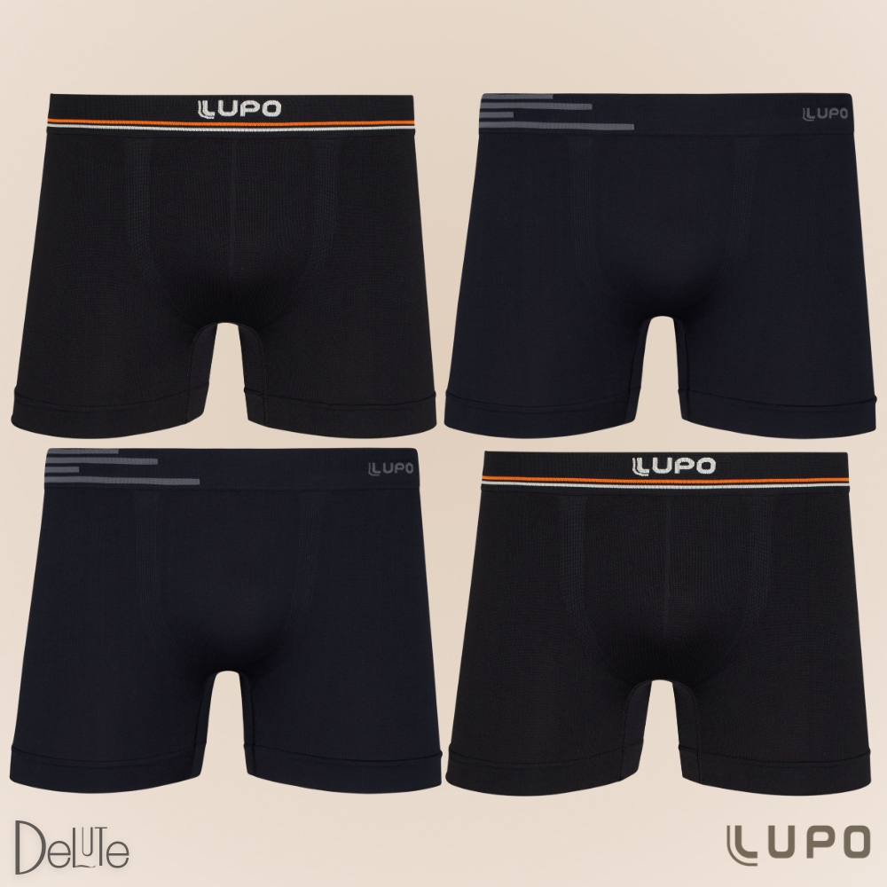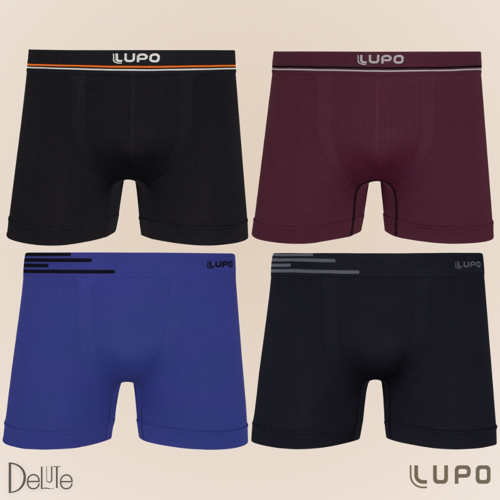 Kit Com 4 Cuecas Boxer Box De Microfibra Sem Costura Lupo Original Modelo Basico Liso - Pronta Entrega