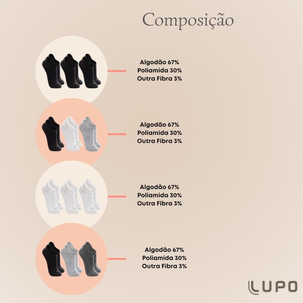 Kit Com 3 Pares Meias Lupo Soquete Sapatilha Invisível Baixa Esportiva Original