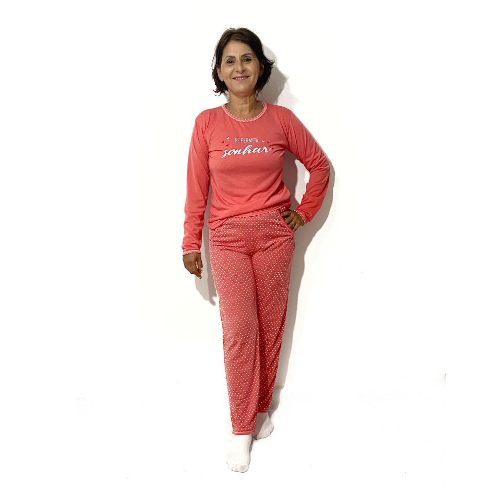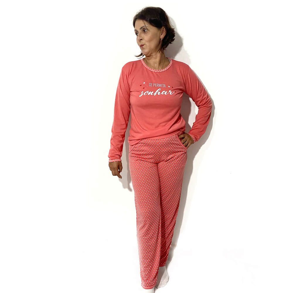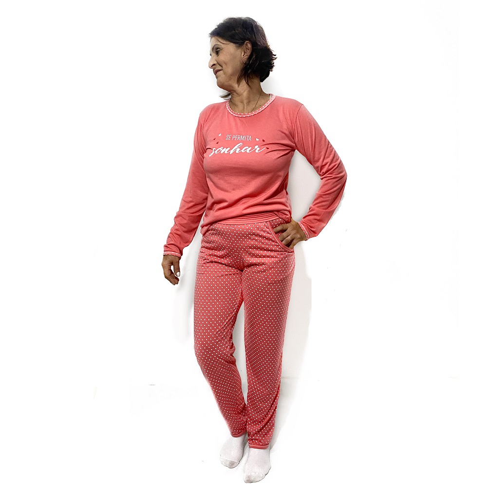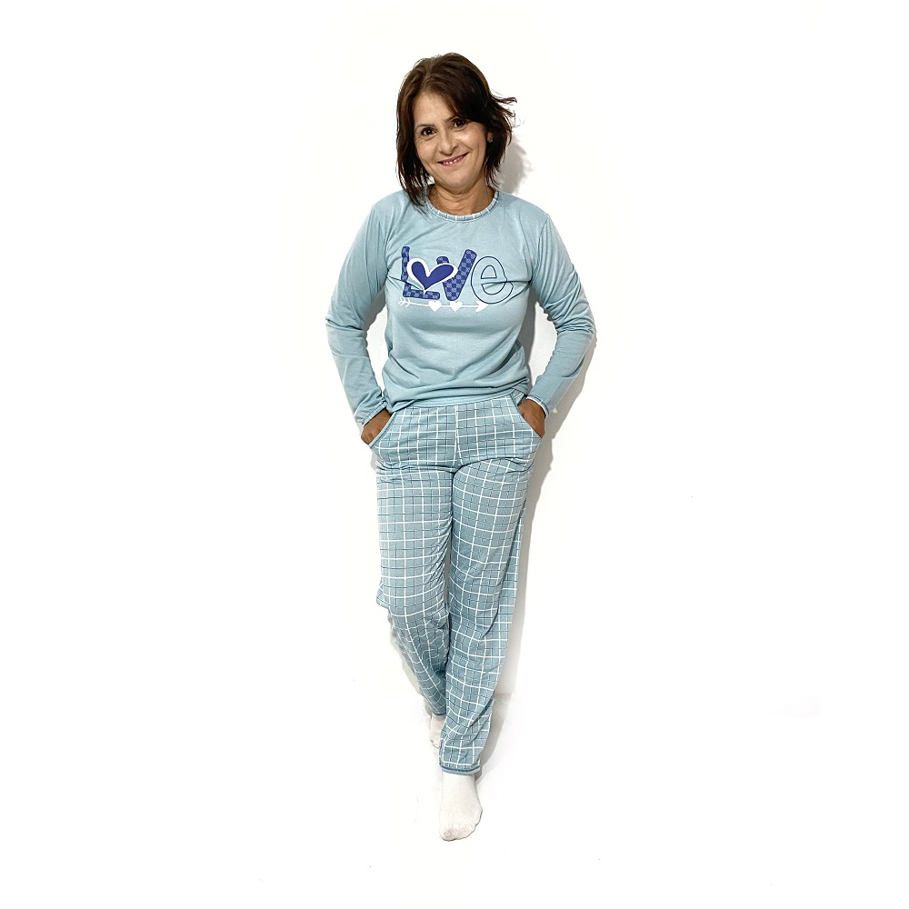Roupa De Dormir Pijama De Frio Conjunto Camisa Fechada Estampada Feminina E Calça Para Inverno