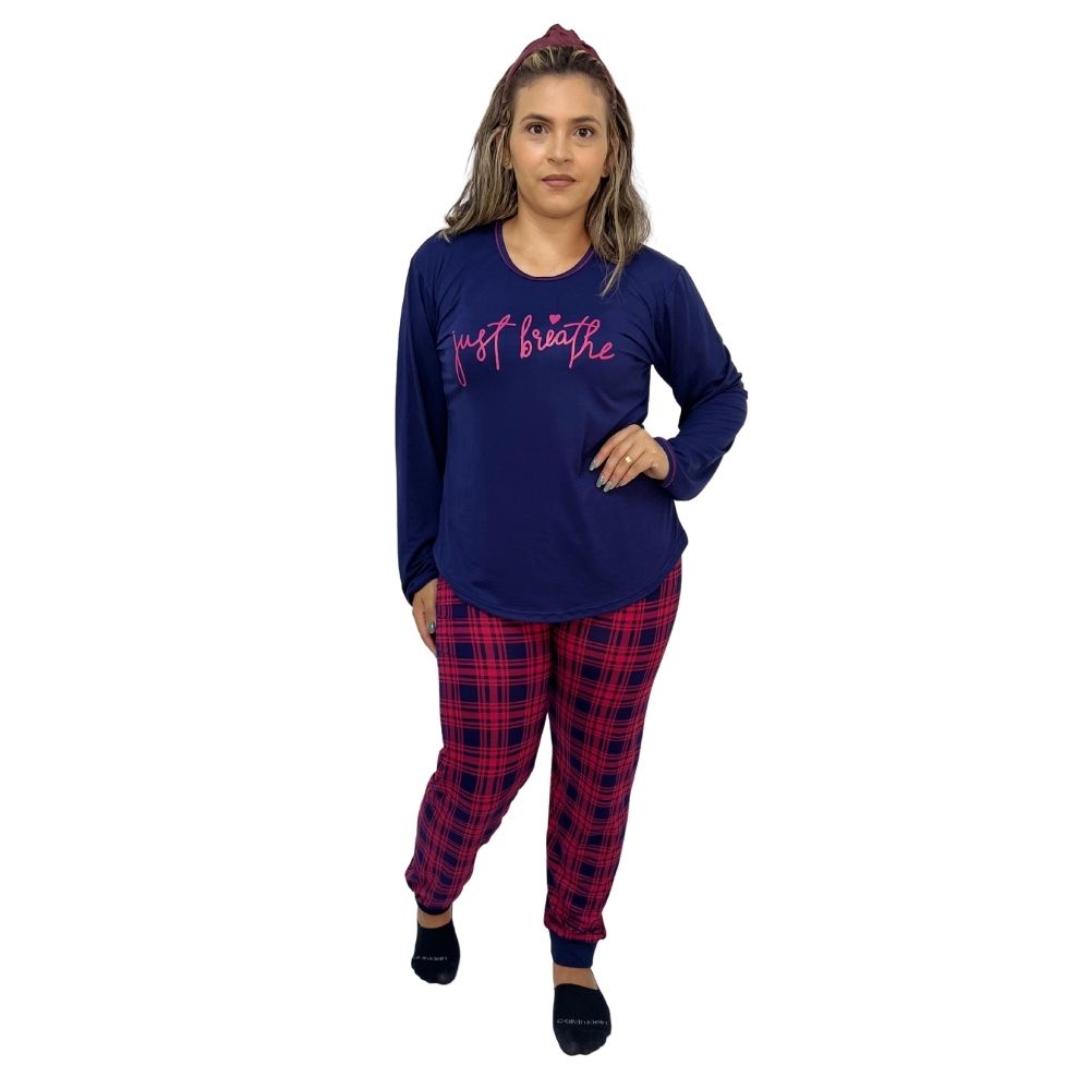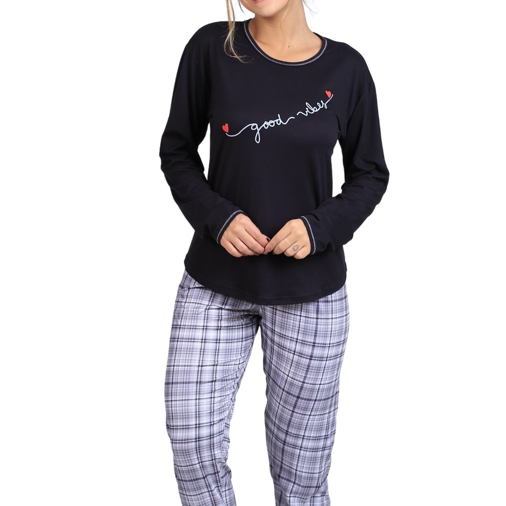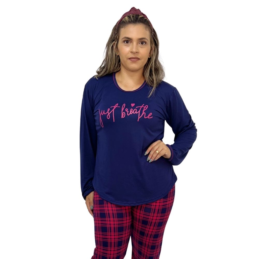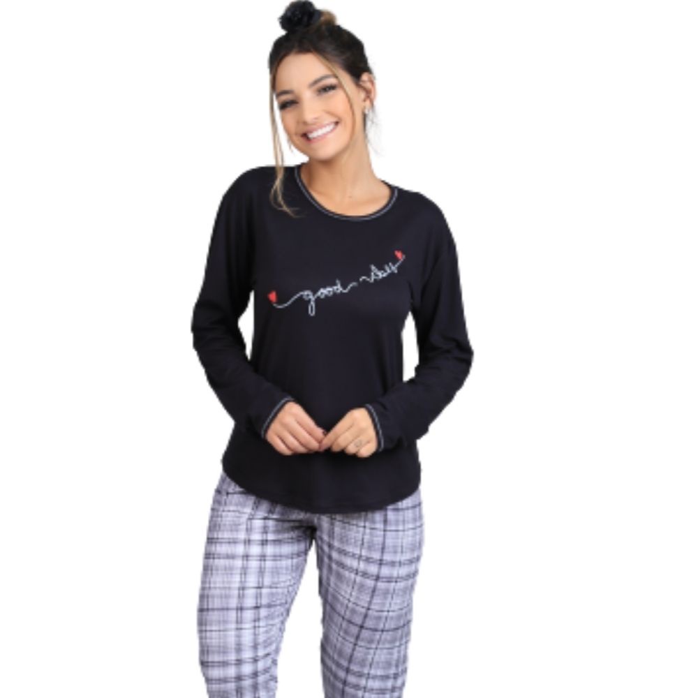 Pijama De Frio Feminino Para O Inverno Com Estampa Conjunto Blusa Manga Comprida E Calca