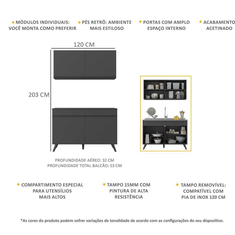 Armário de Compacta 2 peças Veneza Multimóveis MP2141.895 Preto