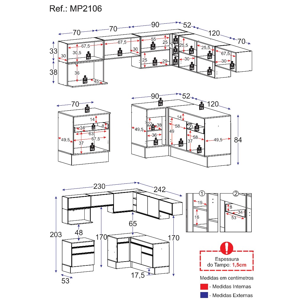 Cozinha Completa de Canto com Rodapé Veneza Multimóveis MP2106 com Armário e Balcão Preta
