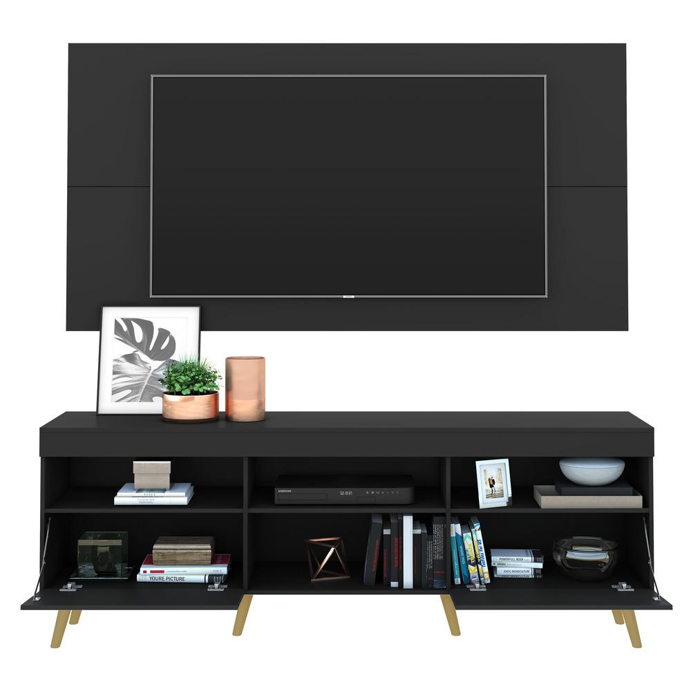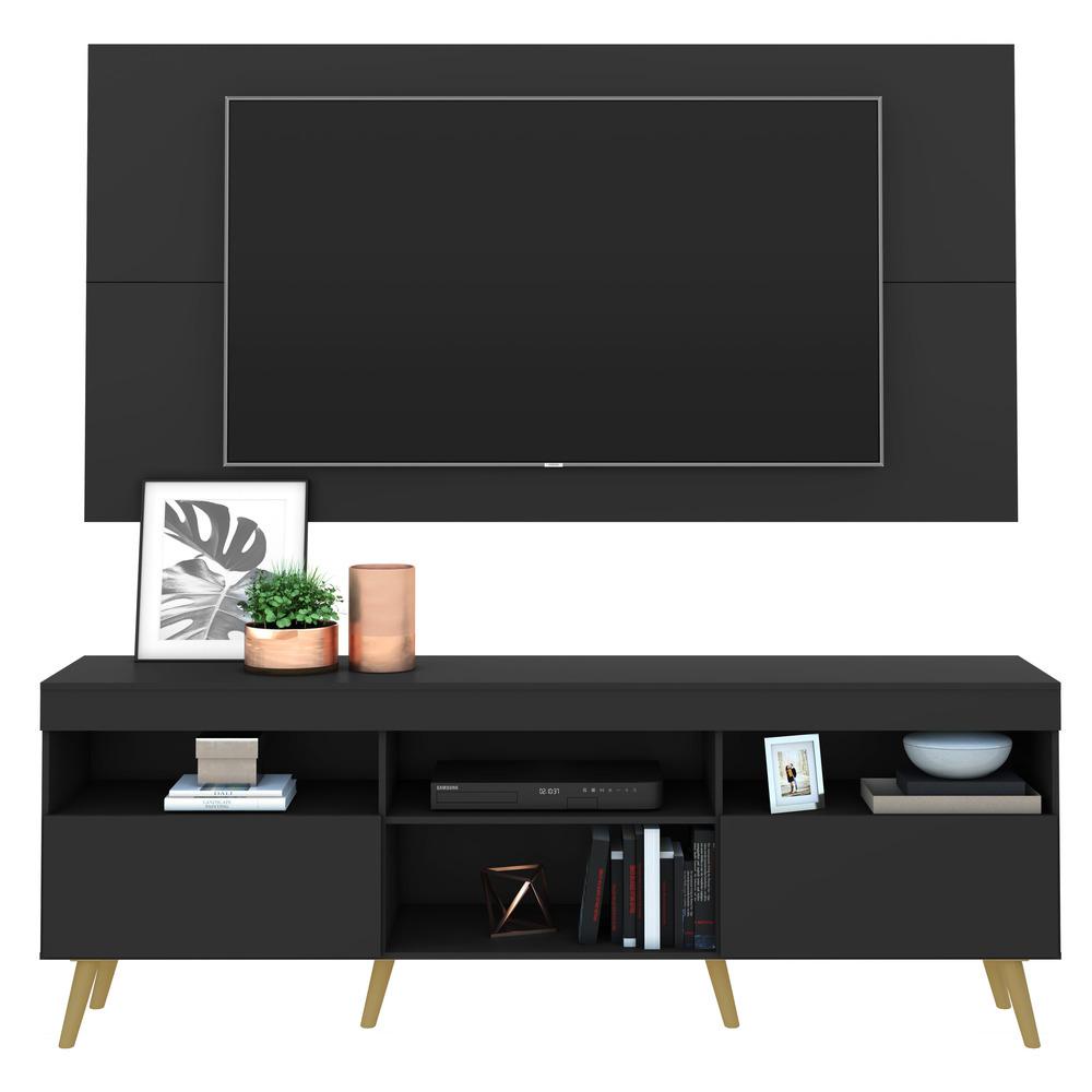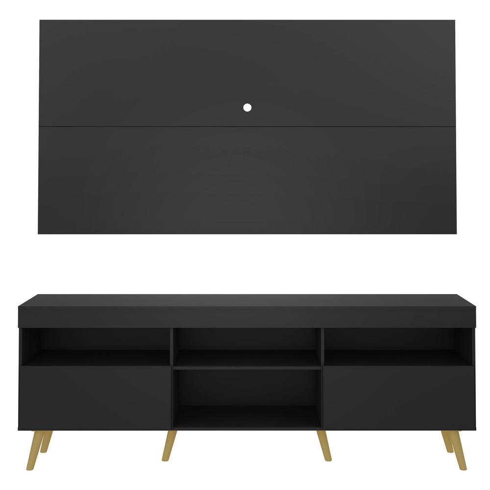 Rack c/ Painel e Suporte TV 65" e Pés Retrô Flórida Multimóveis Preto/Natural