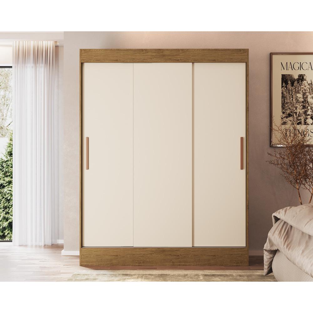 Guarda-Roupa 3 Portas Correr 2 Gavetas Flórida Multimóveis CR4142 Nogueira/Off White