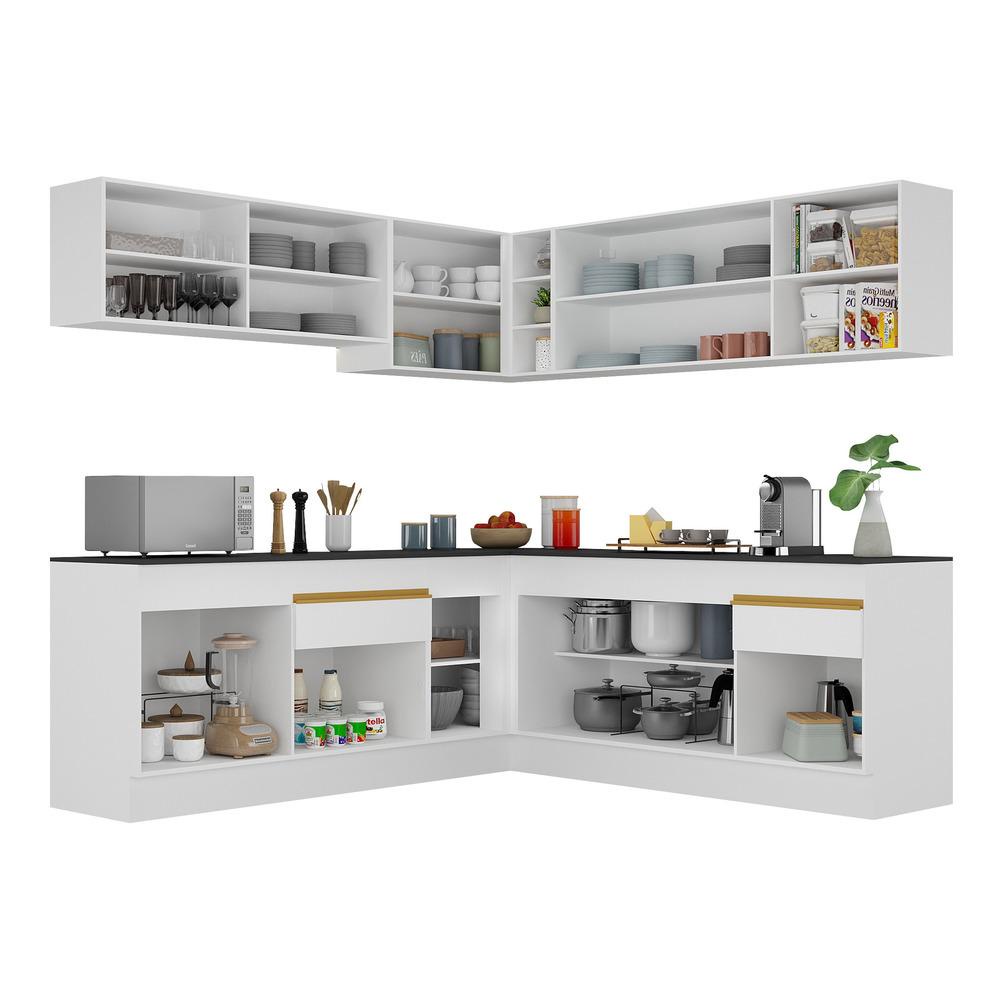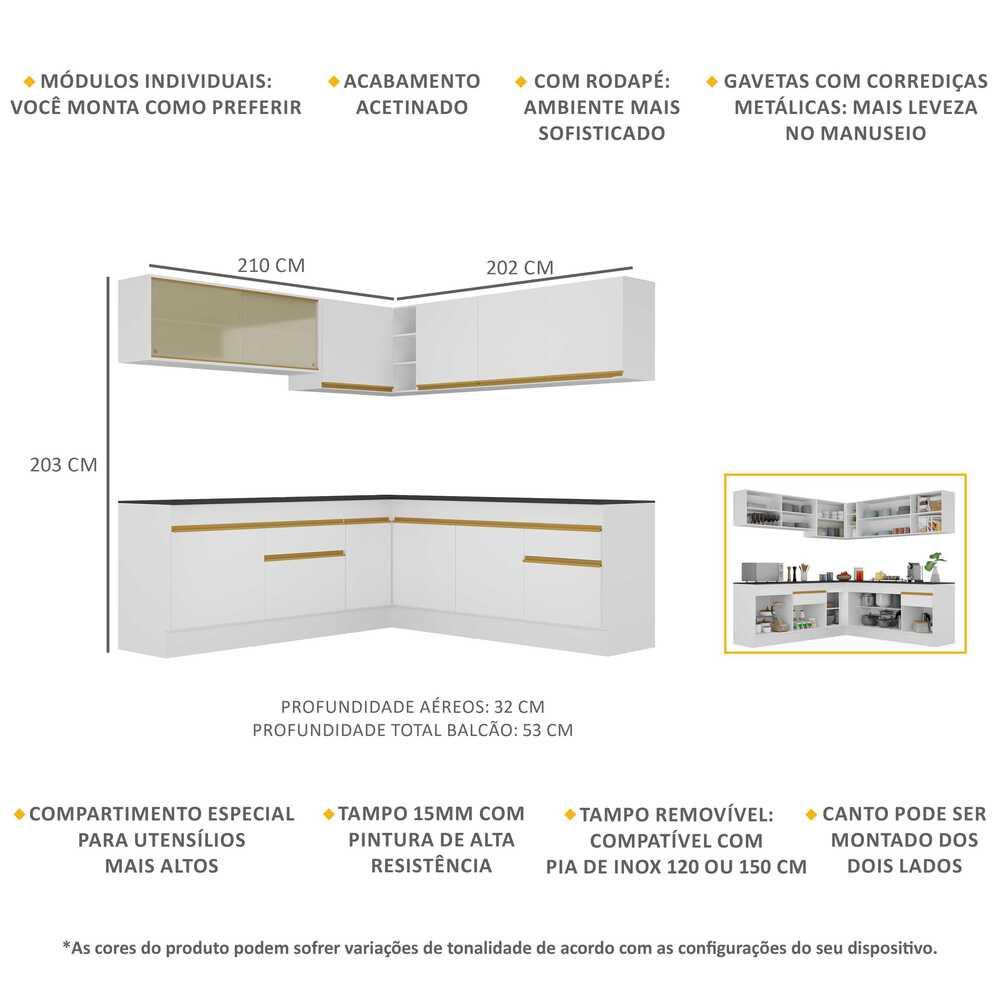 Cozinha Completa de Canto com Rodapé Veneza Multimóveis MP2096 com Armário e Balcão Branca