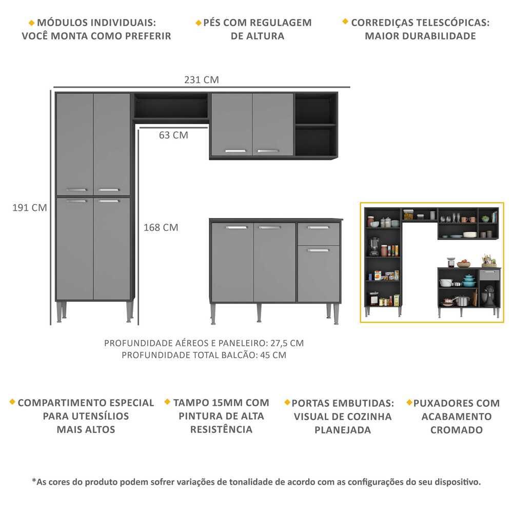 Cozinha Compacta Xangai Plus Multimóveis Preta/Grafite