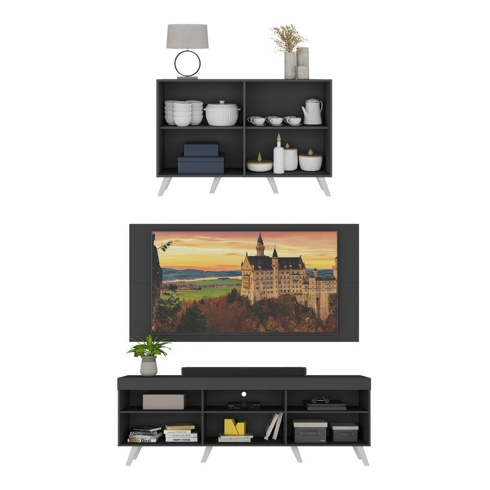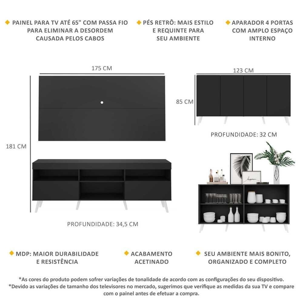 Conjunto Sala de Estar Rack + Painel TV 65" e Aparador Retrô Sofia Multimóveis Preto/Branco