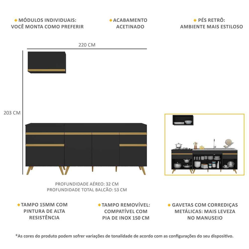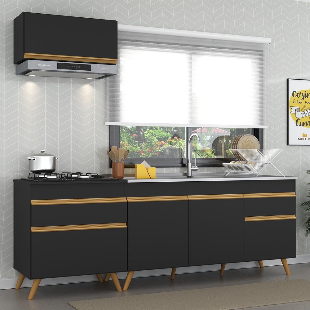 Cozinha Compacta Veneza GB Multimóveis MP2074 com Armário e Balcão Preta