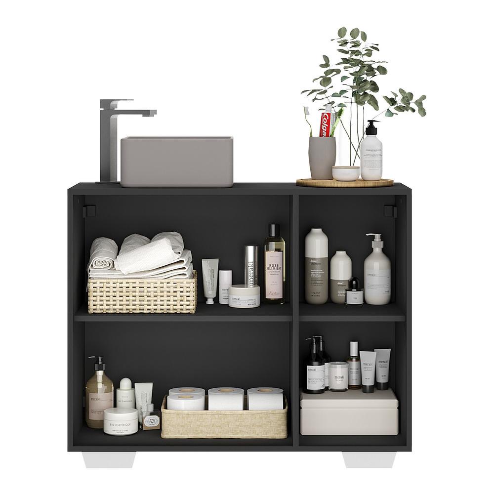 Gabinete Banheiro 3 Portas 90cm Multimóveis MP5031 Preto/Branco