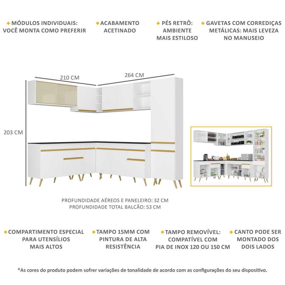 Cozinha Completa de Canto Veneza GW Multimóveis MP2065 com Armário e Balcão Branca