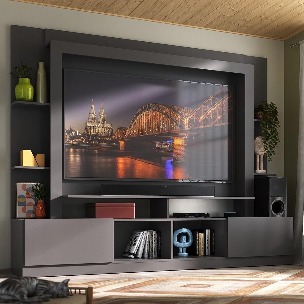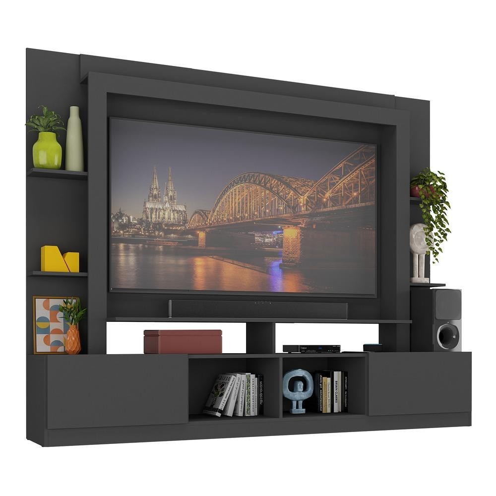 Rack Estante com Painel TV 65" e 2 portas Oslo Multimóveis Preto