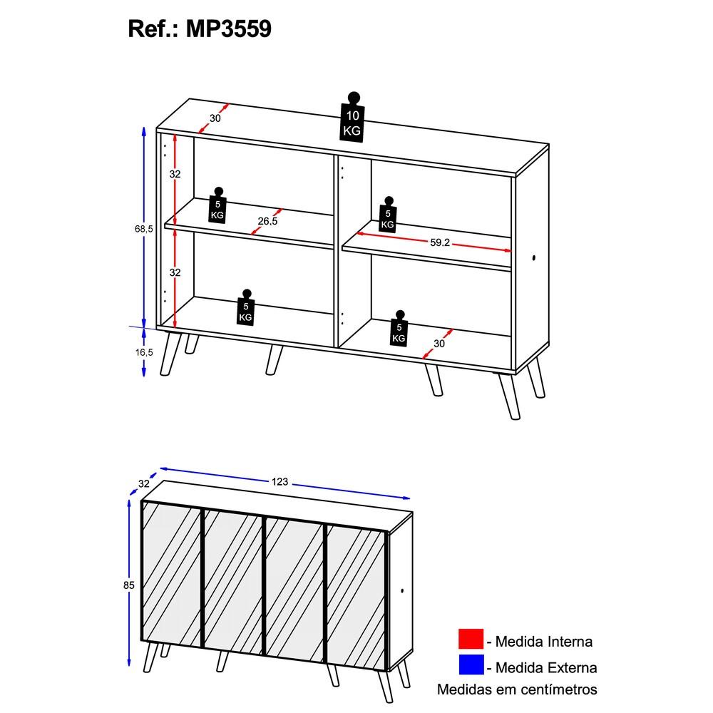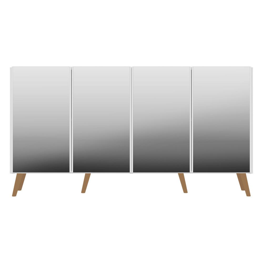Aparador Buffet 4 portas c/ Espelho e Pés Retrô Vegas Multimóveis Branco/Natural