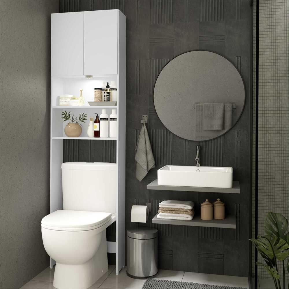 Armário Banheiro com Led para Vaso Sanitário e 2 portas Multimóveis Branco