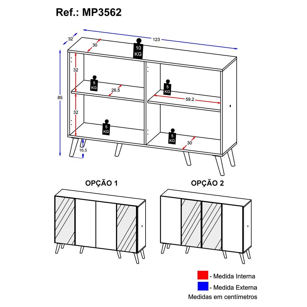Aparador Buffet c/ Espelho e Pés Retrô Vegas Multimóveis Rustic/Preto