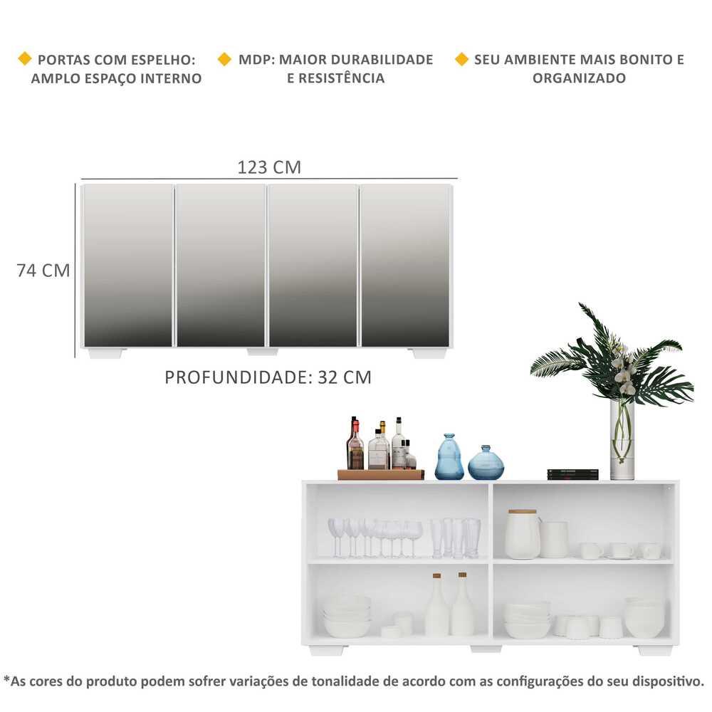 Aparador Buffet com Espelho Multimóveis Vegas com 4 Portas FG3560 Branco
