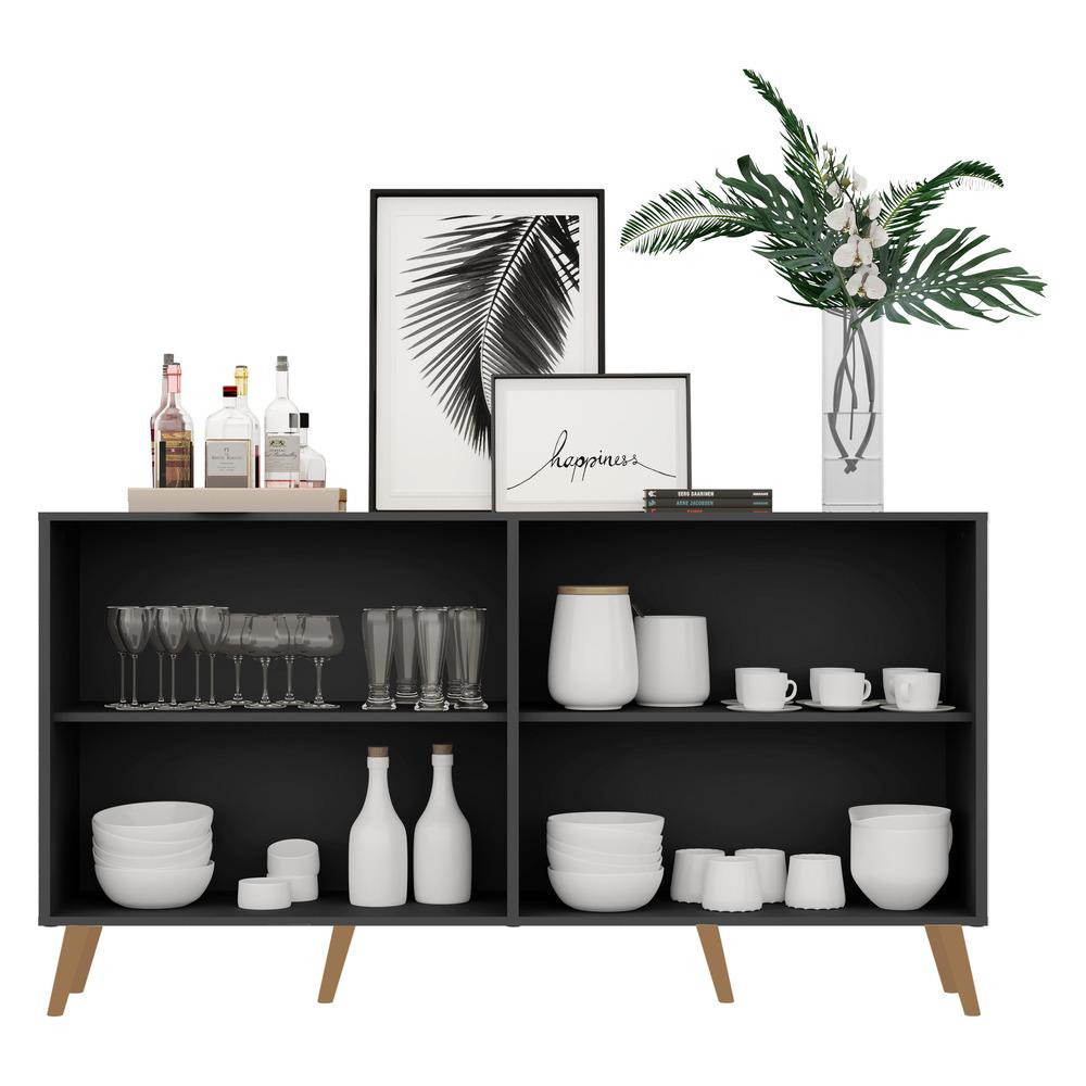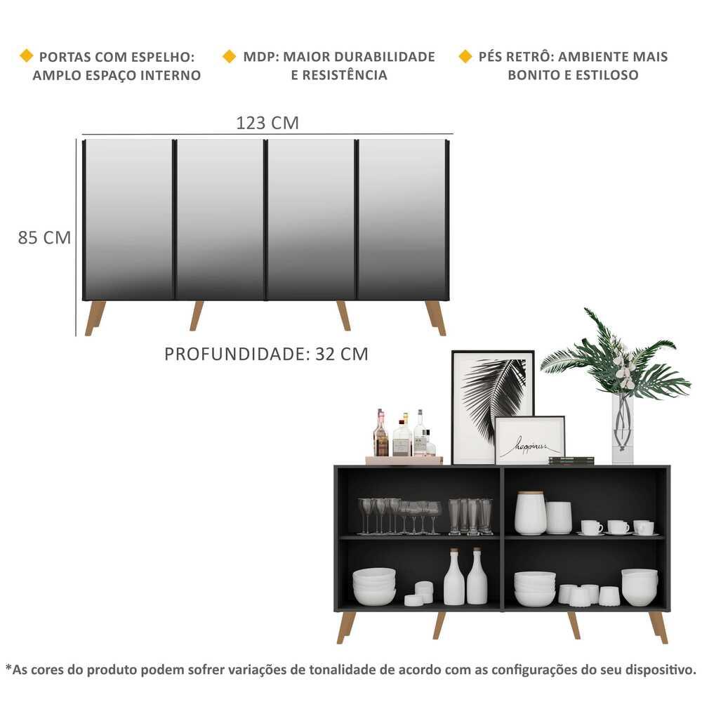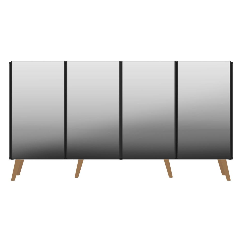 Aparador Buffet 4 portas c/ Espelho e Pés Retrô Vegas Multimóveis Preto/Natural