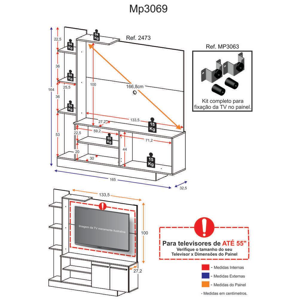 Estante Home Theater com Suporte P/TV até 55'' Denver Multimóveis Branco/Madeirado