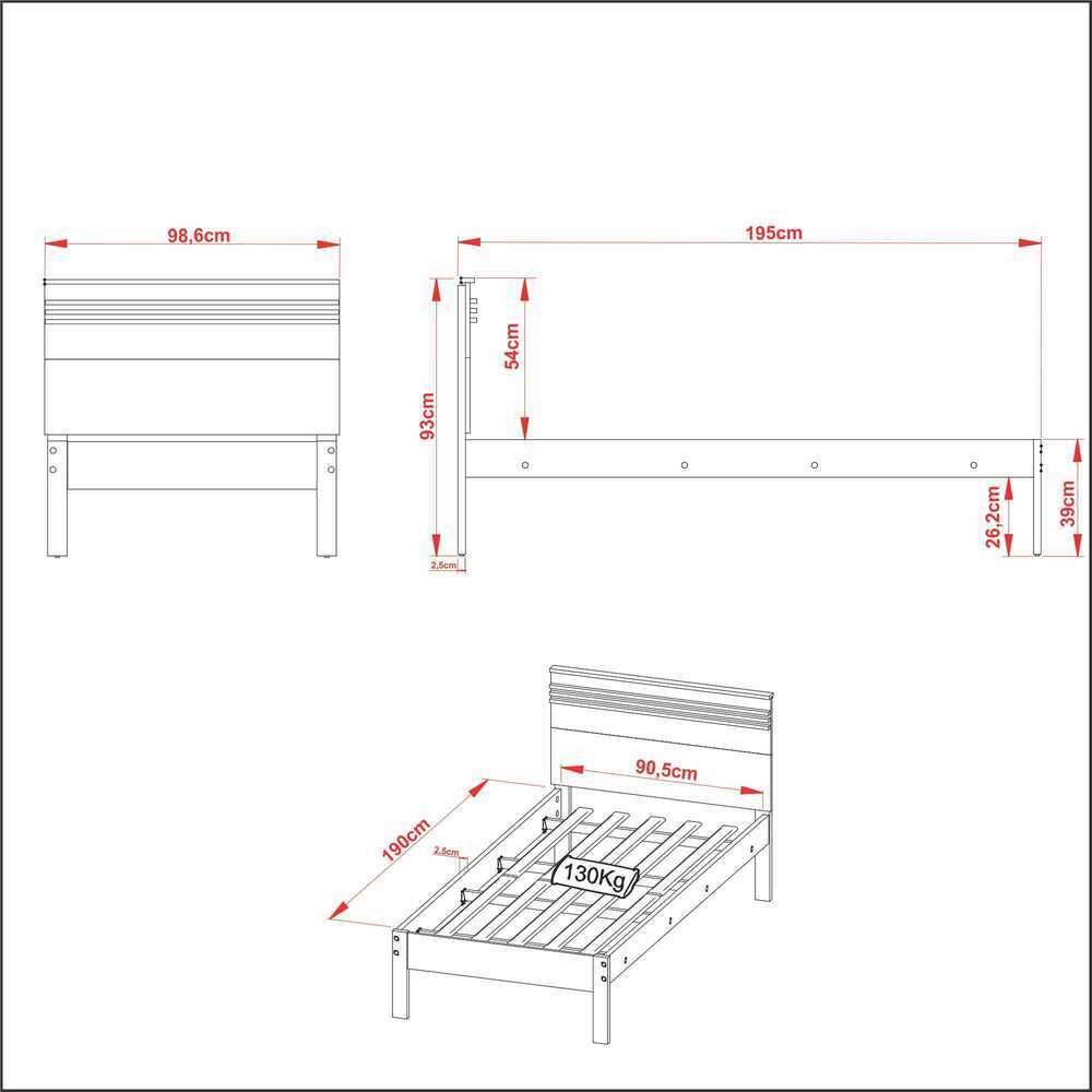 Cama de Solteiro para Colchão 88 x 188 cm Multimóveis CR35014 Branca