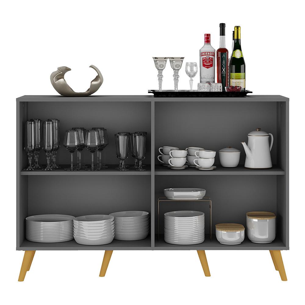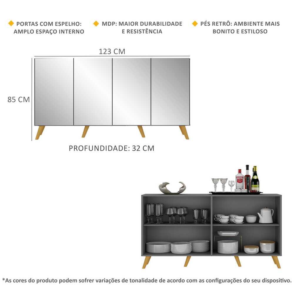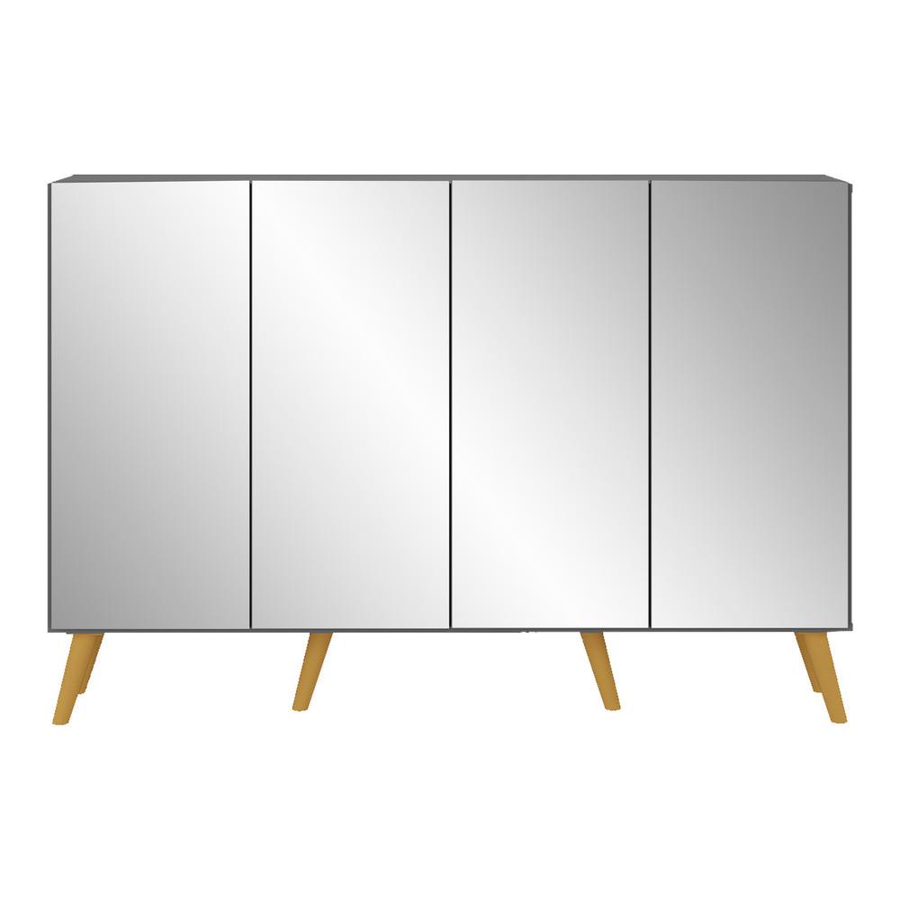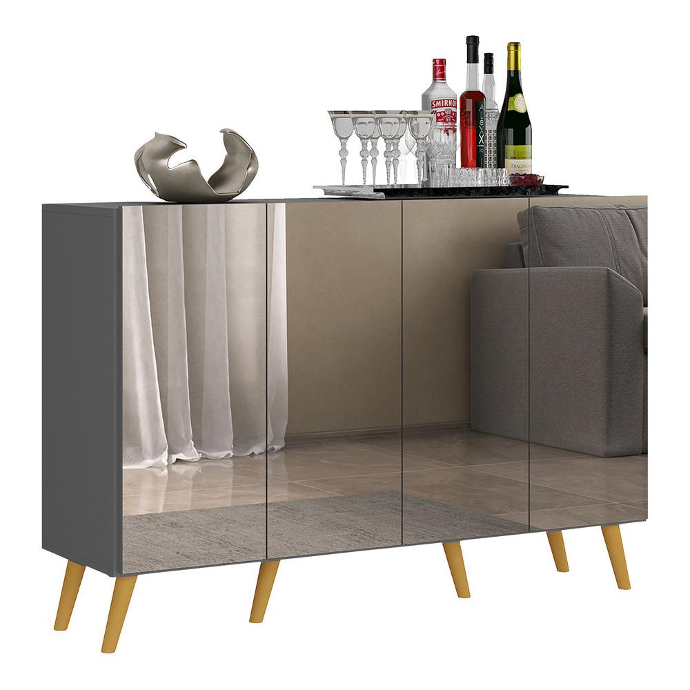 Aparador Buffet 4 portas com Espelho e Pés Retrô Vegas Multimóveis Grafite/Natural