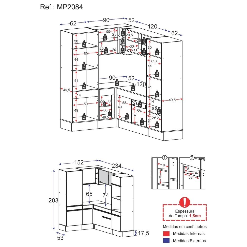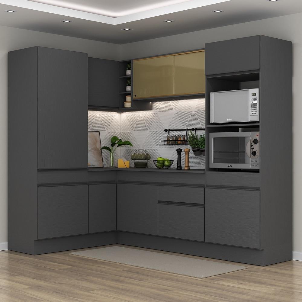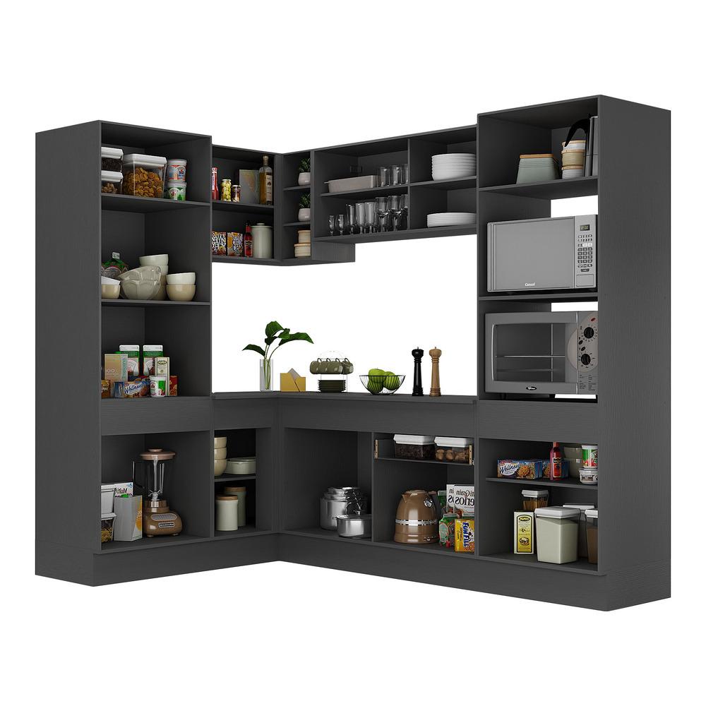 Armário de Cozinha Completa de Canto com Rodapé Veneza Multimóveis MP2084.895 Preto