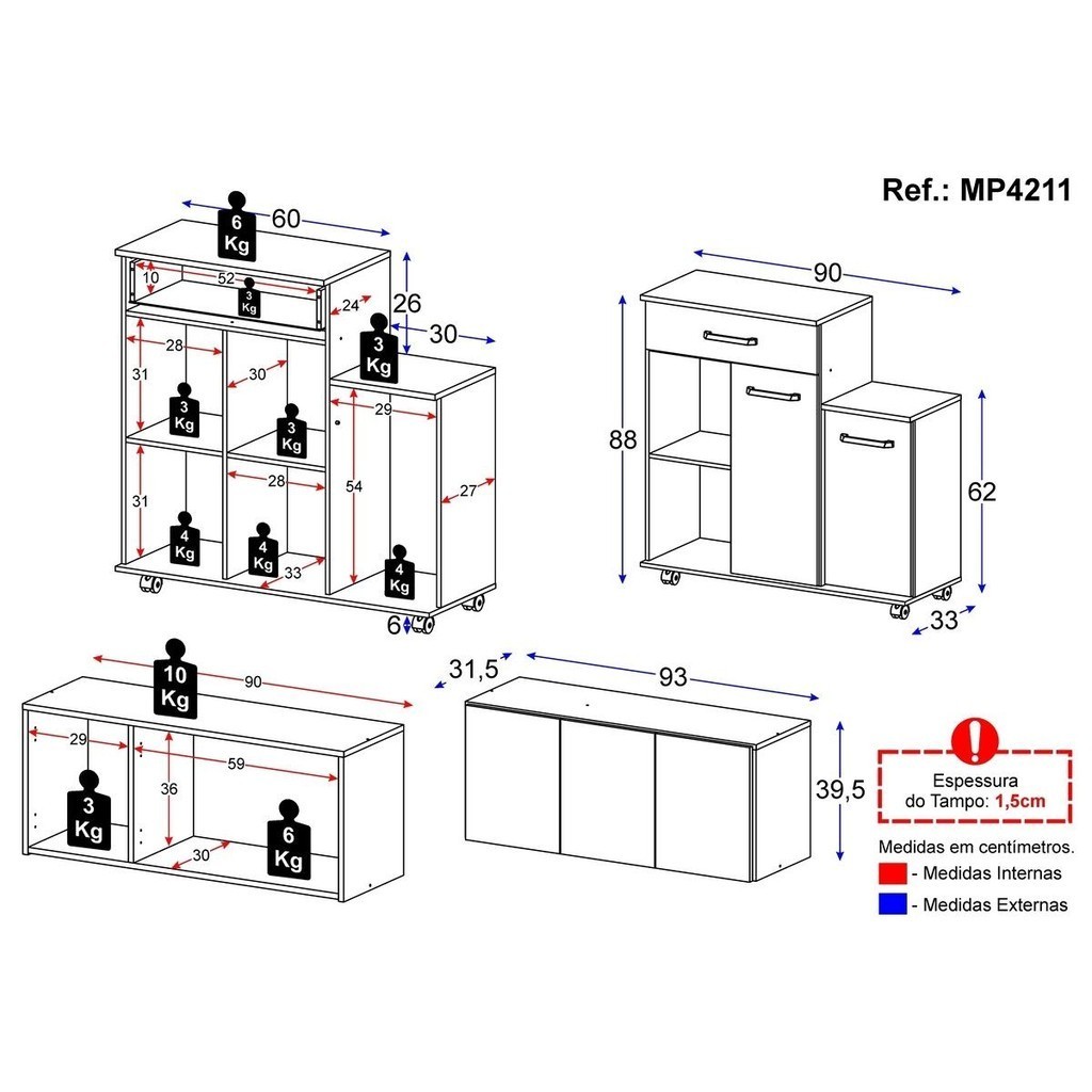 Cômoda/Balcão Infantil com Armário 3 Portas Multimóveis MP4211