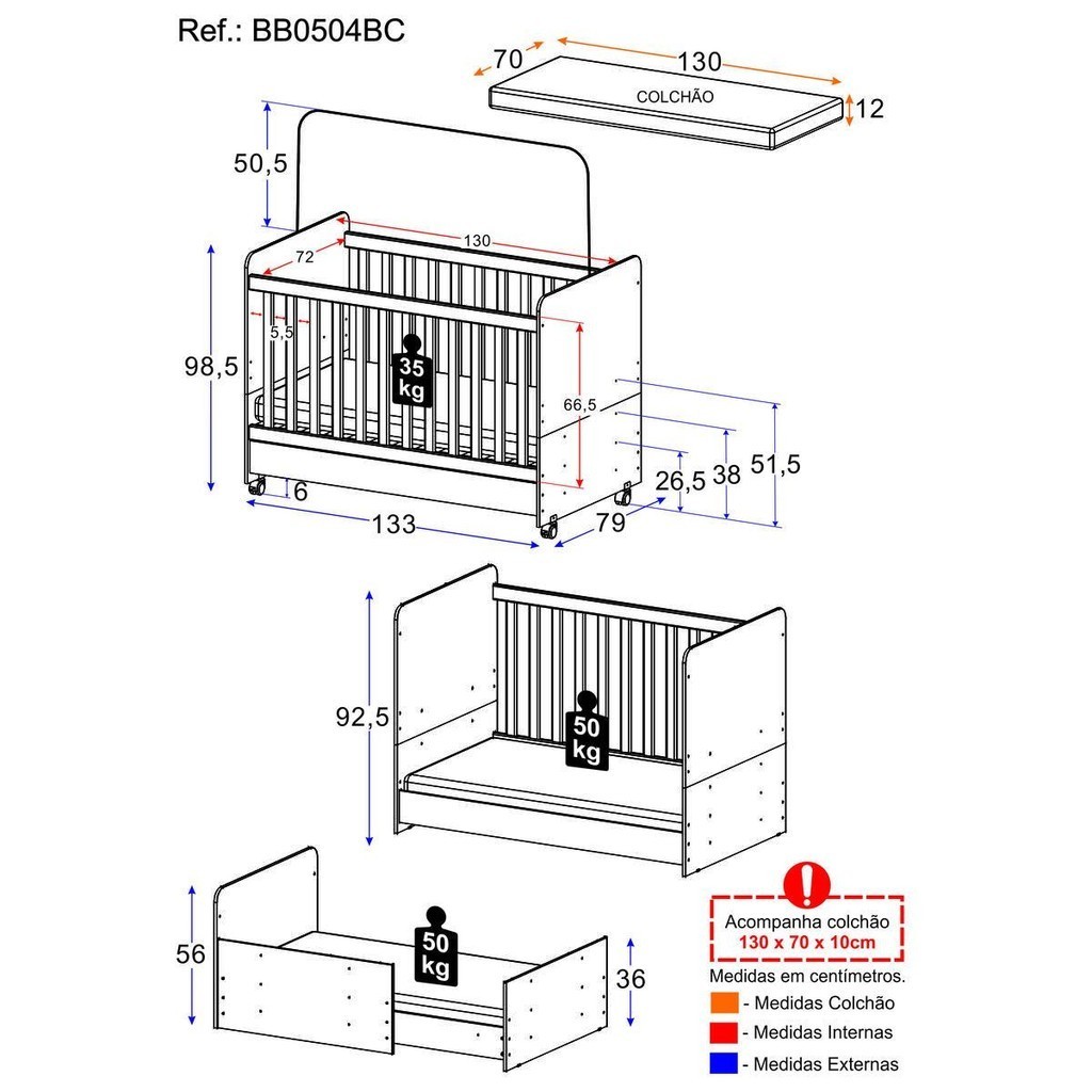 Berço Americano 3 em 1 com Colchão Incluso Chantilly Multimóveis BB0504BC