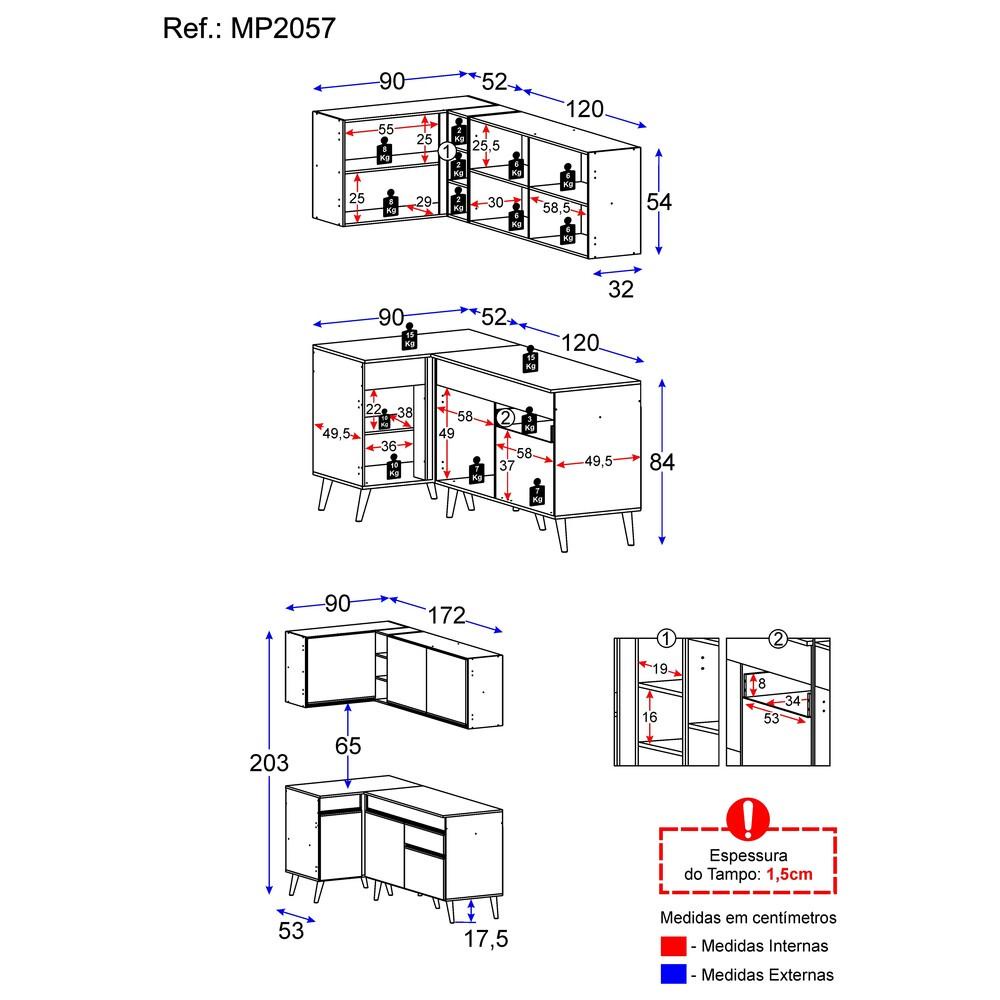 Cozinha Compacta de Canto Veneza GW Multimóveis MP2057 com Armário e Balcão Branca