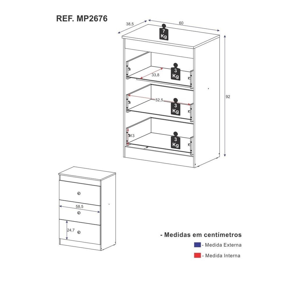 Cômoda Infantil com 3 Gavetas Doce de Leite Multimóveis MP2676