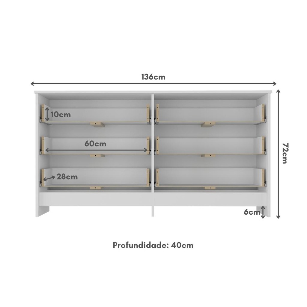 Cômoda Infantil 136cm com 6 Gavetas Multimóveis MP4336