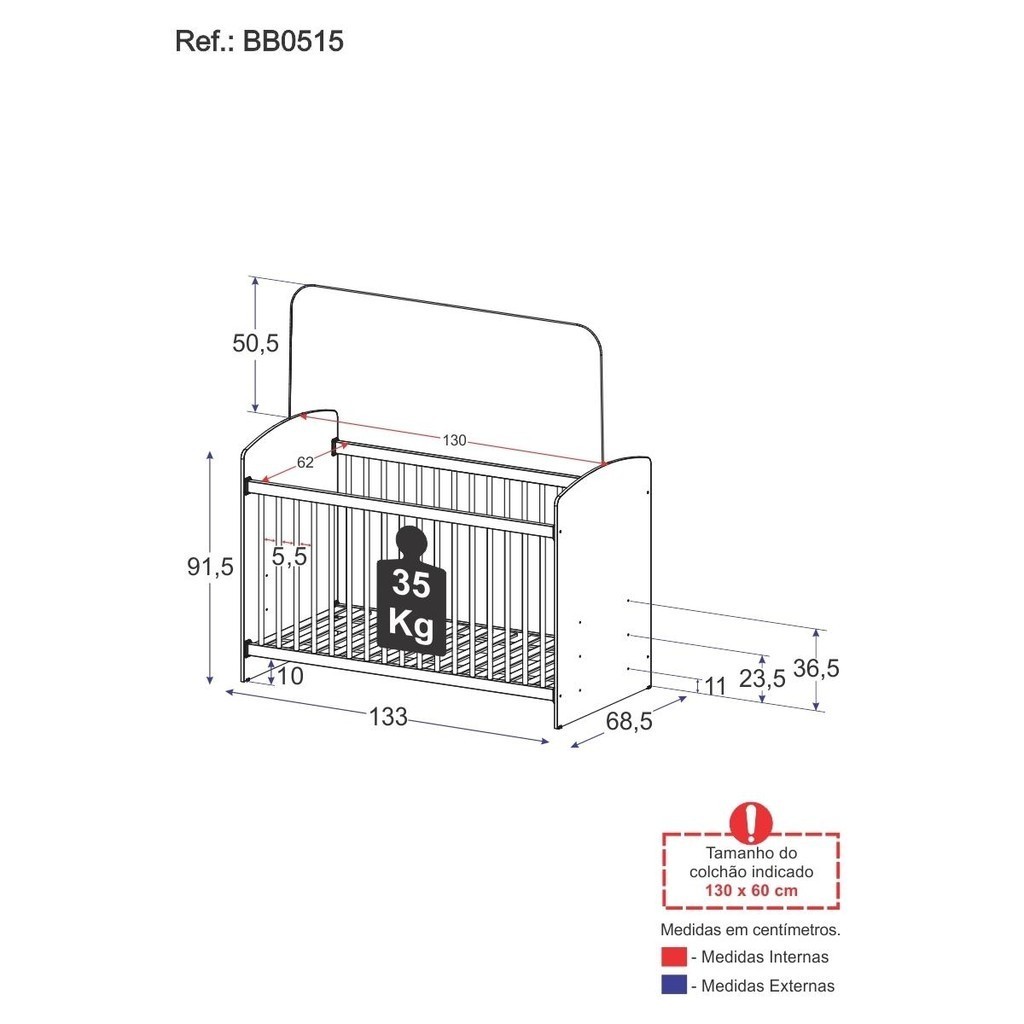 Berço para Colchão 60x130cm Sonho Multimóveis BB0515