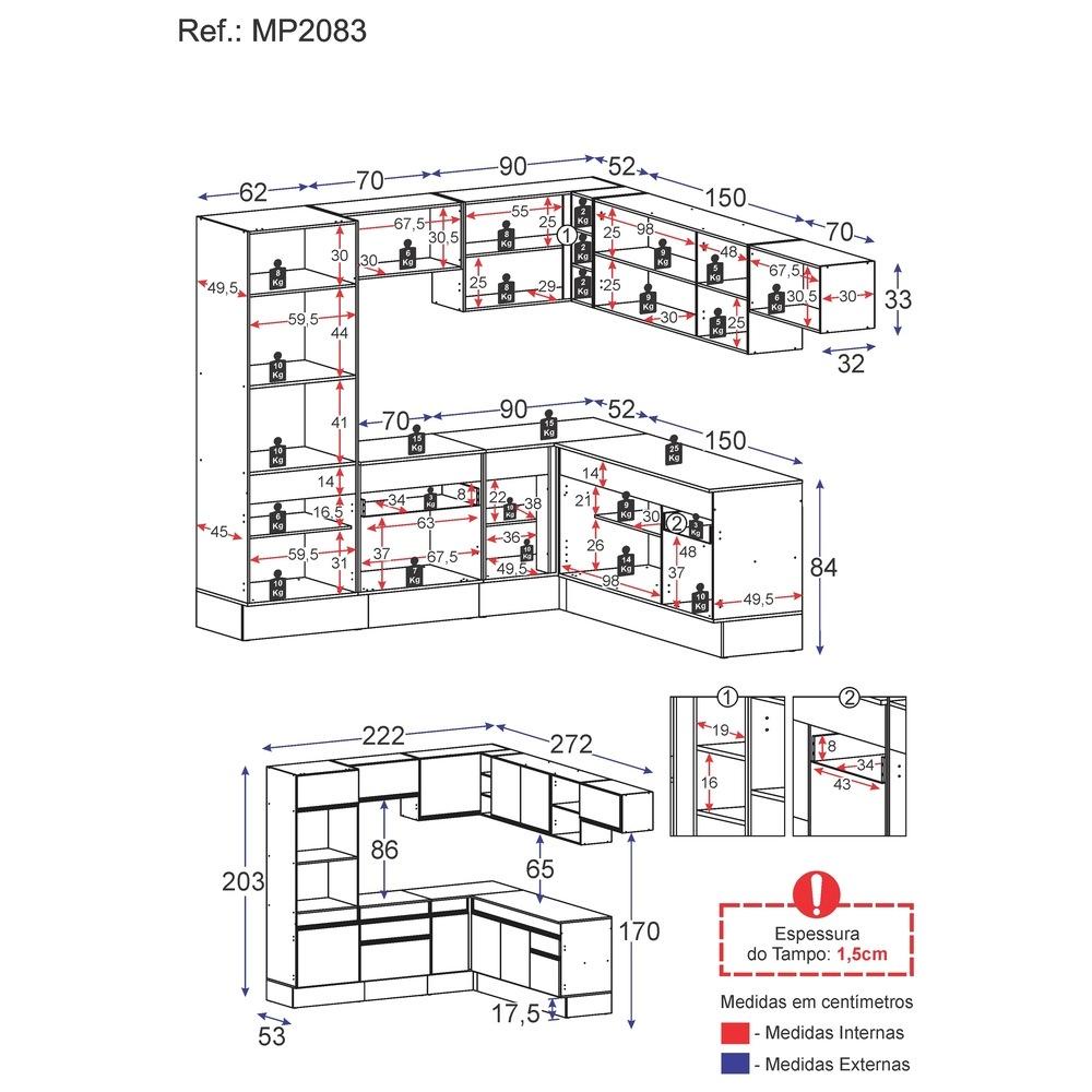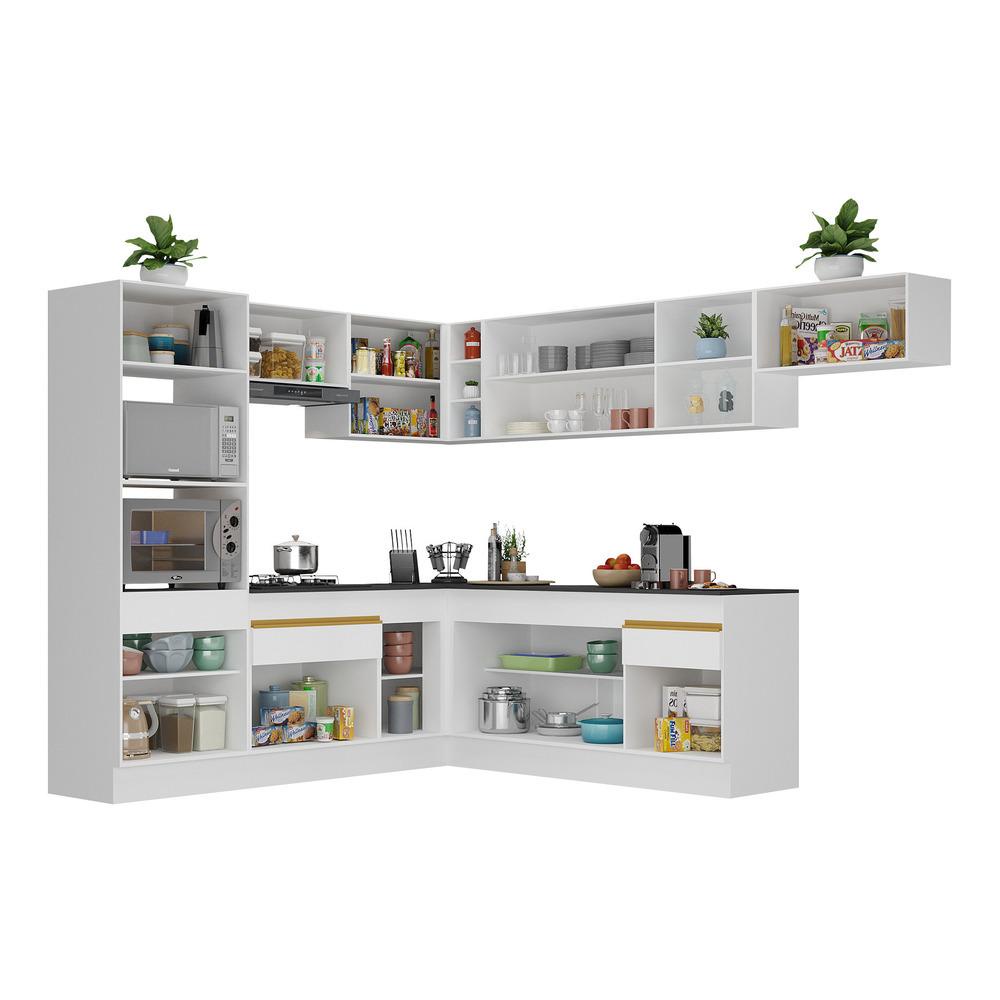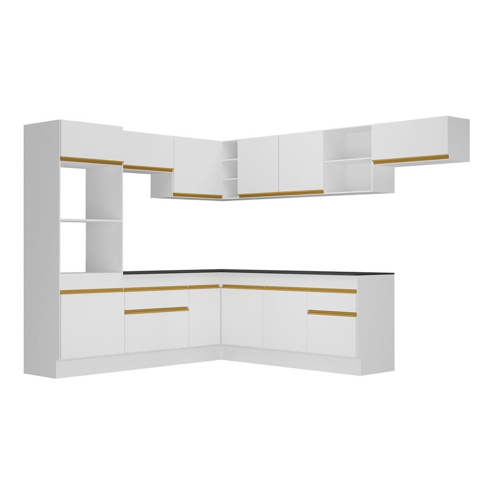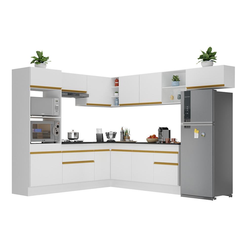 Cozinha Completa de Canto com Rodapé Veneza Multimóveis MP2083 com Armário e Balcão Branca
