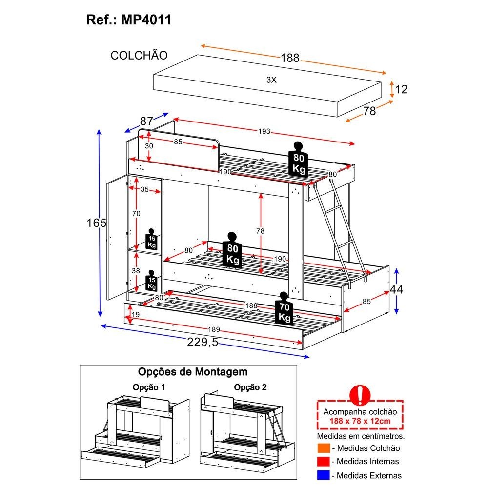 Treliche Havana Multimóveis Branca com 3 Colchões e Porta Lateral