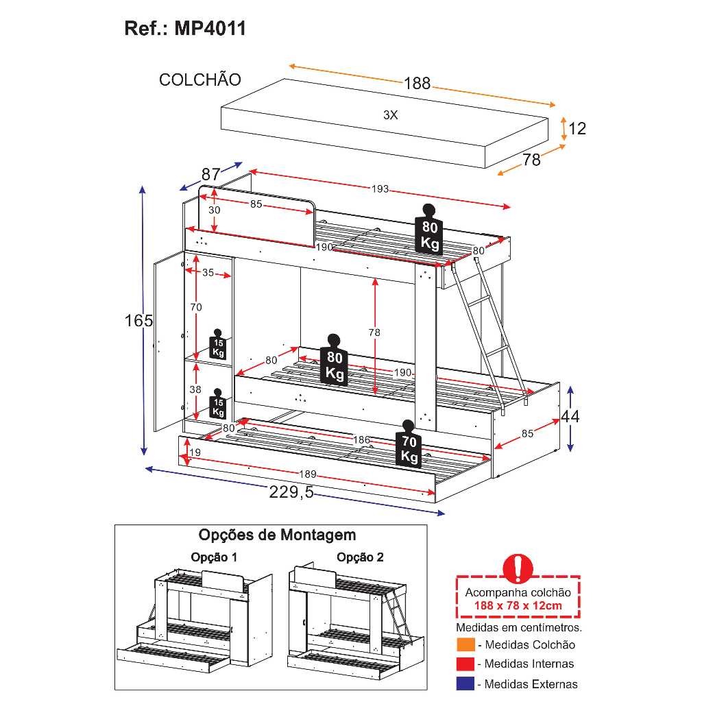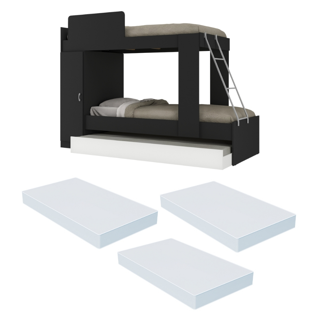 Treliche Havana Multimóveis Preta com 3 Colchões e Porta Lateral