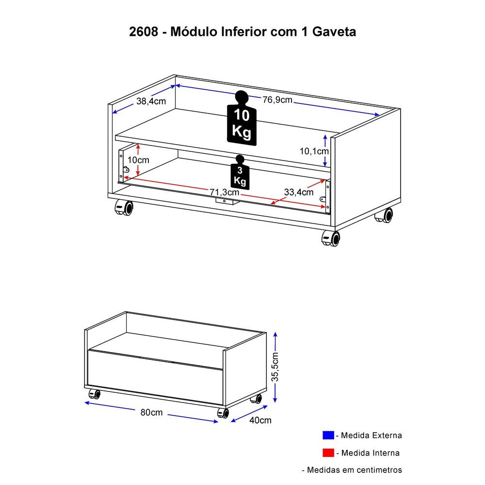 Balcão para Banheiro c/ Rodízios e 1 Gaveta Multimóveis Branco