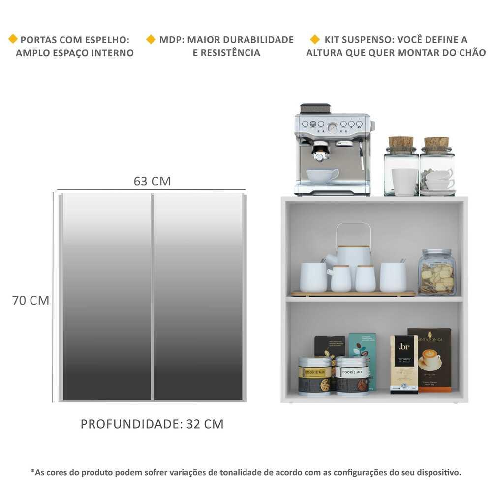 Aparador Cantinho do Café com Espelho Suspenso 2 Portas Multimóveis Branco