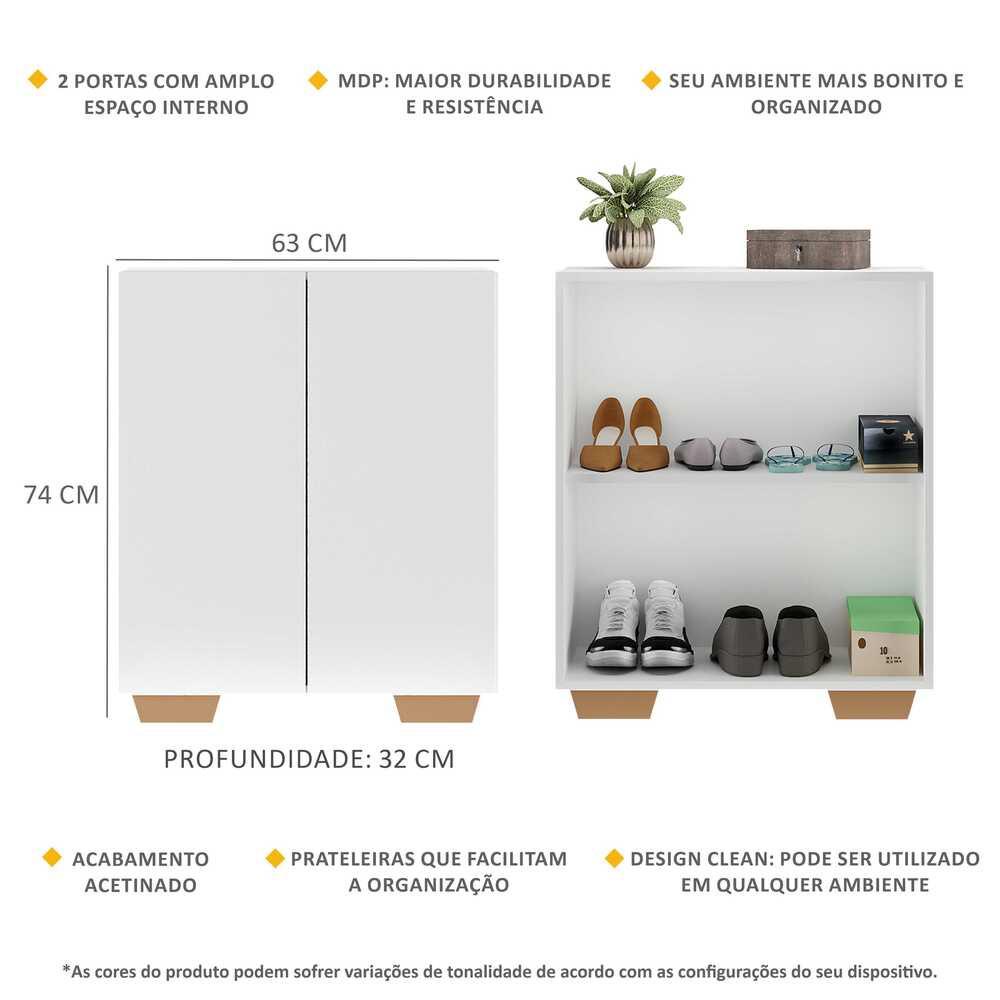 Sapateira 2 Portas Nina Multimóveis Branca/Natural