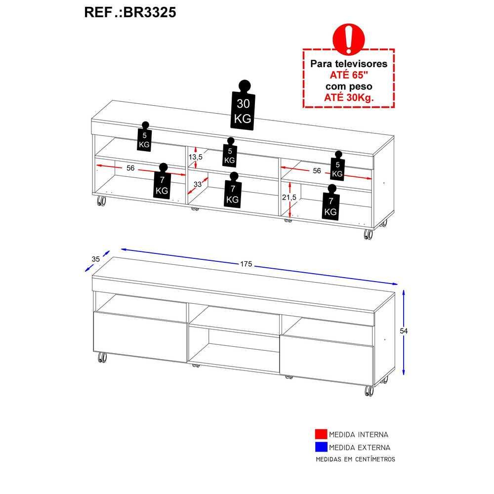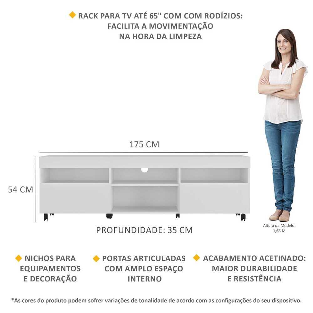 Rack TV 65" com Rodízios e 2 Portas Espanha Multimóveis MP3325 Branco