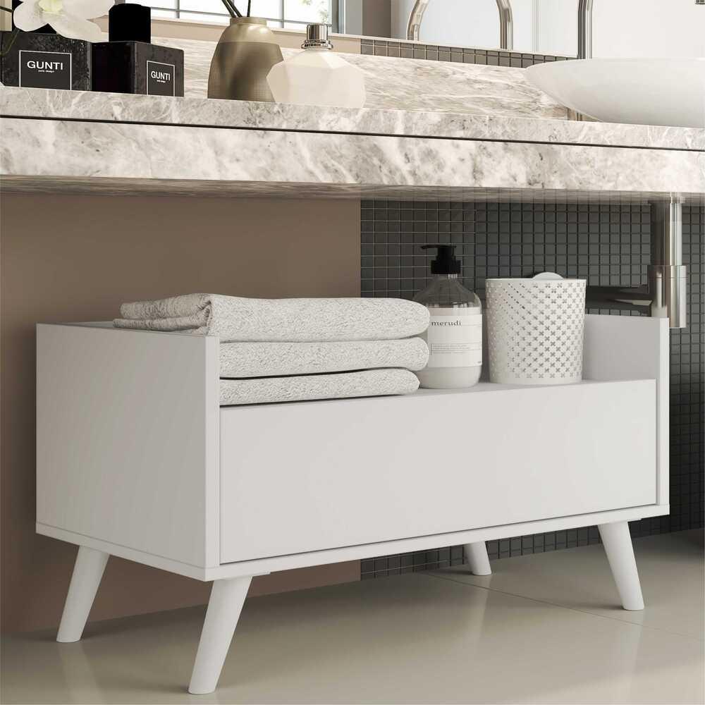 Gabinete Balcão Banheiro 80 cm c/ Pés Retrô Multimóveis Branco