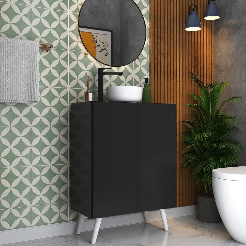 Gabinete Banheiro 2 Portas Retrô 63cm Multimóveis MP5006 Preto/Branco