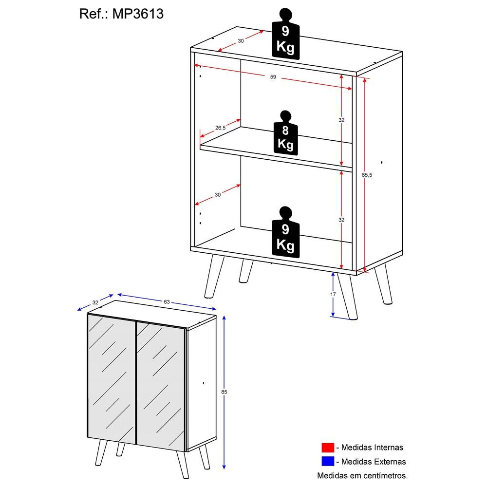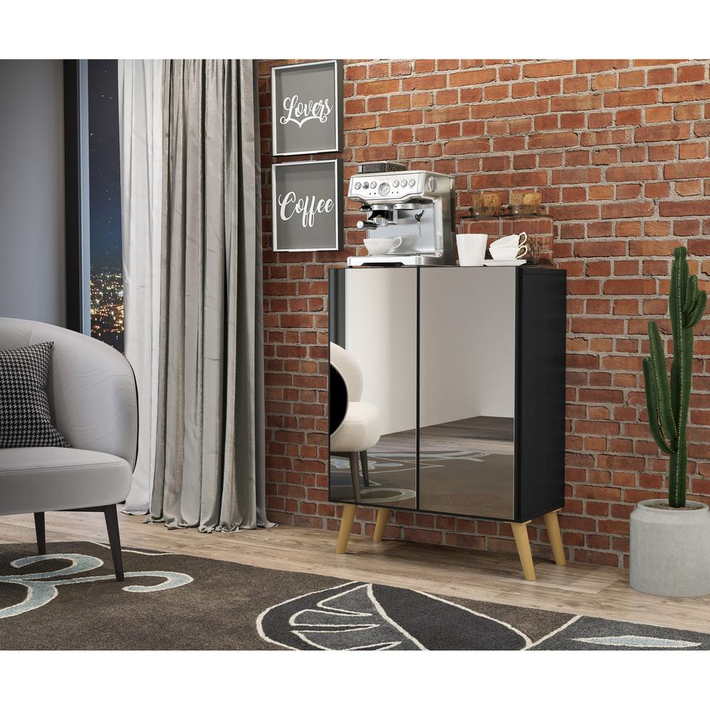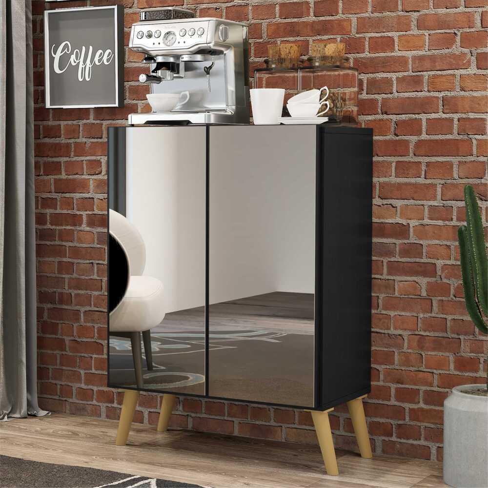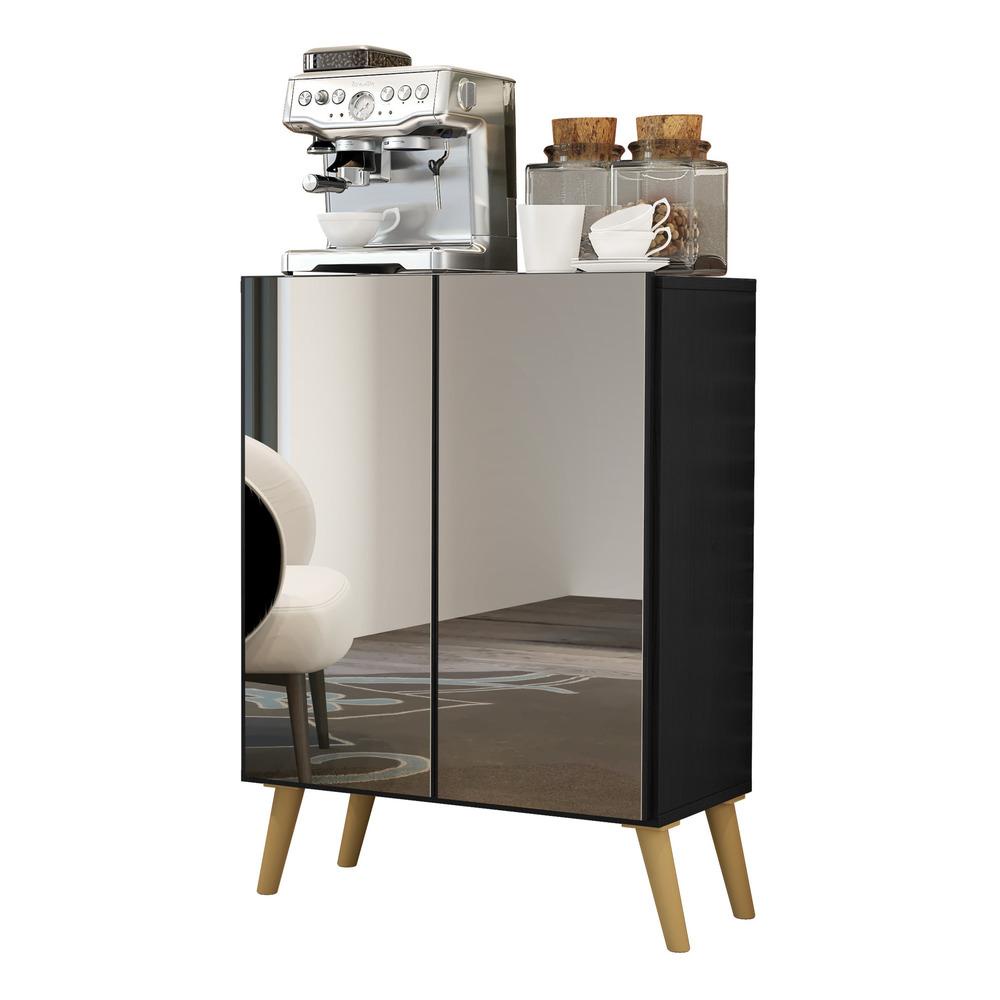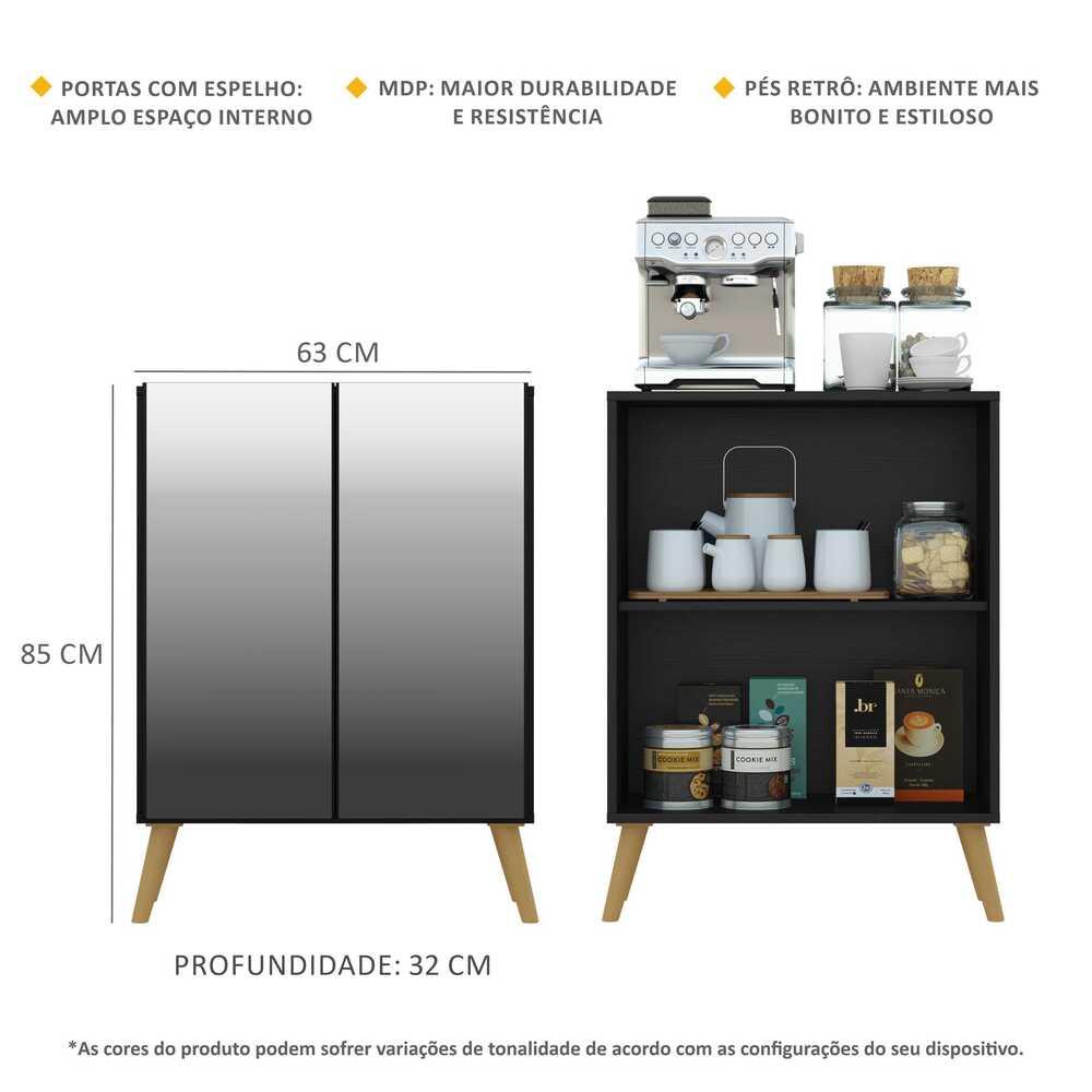 Aparador Cantinho do Café com Espelho e Pés Retrô 2 Portas Multimóveis Preto/Natural