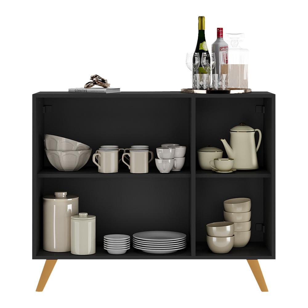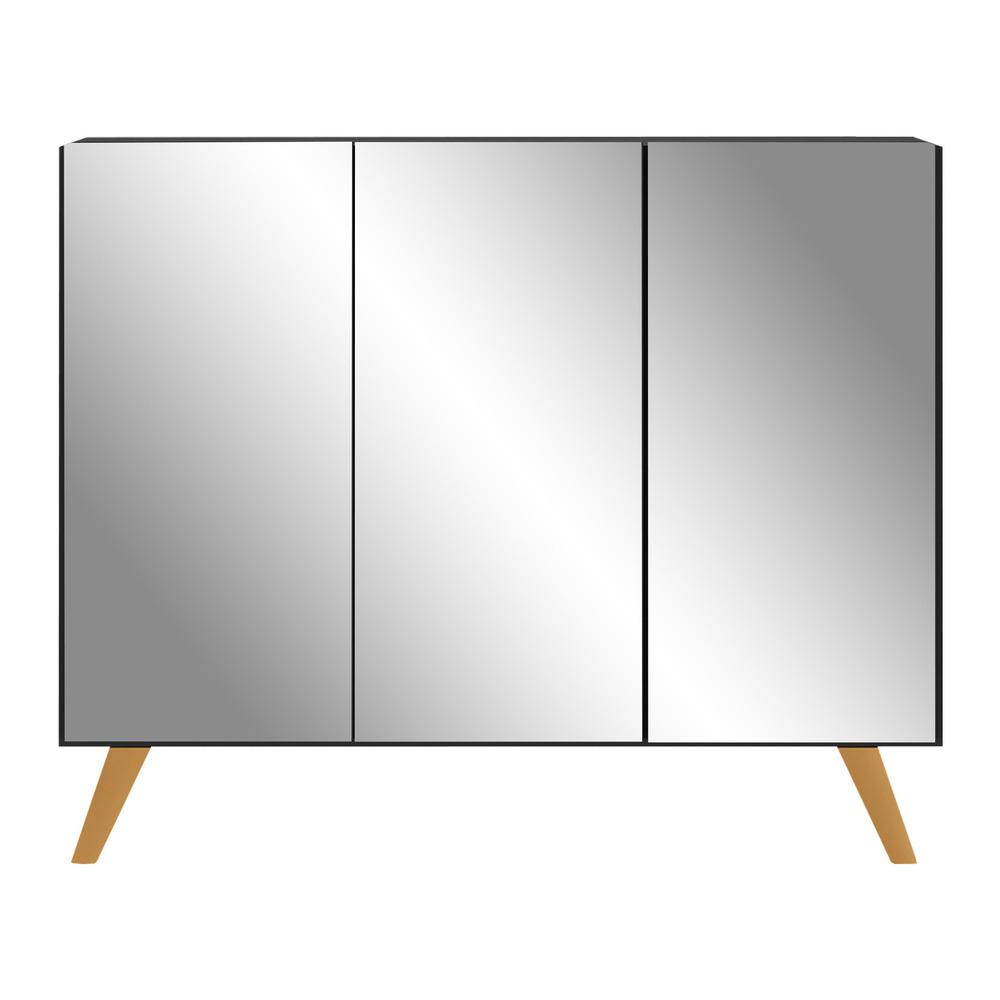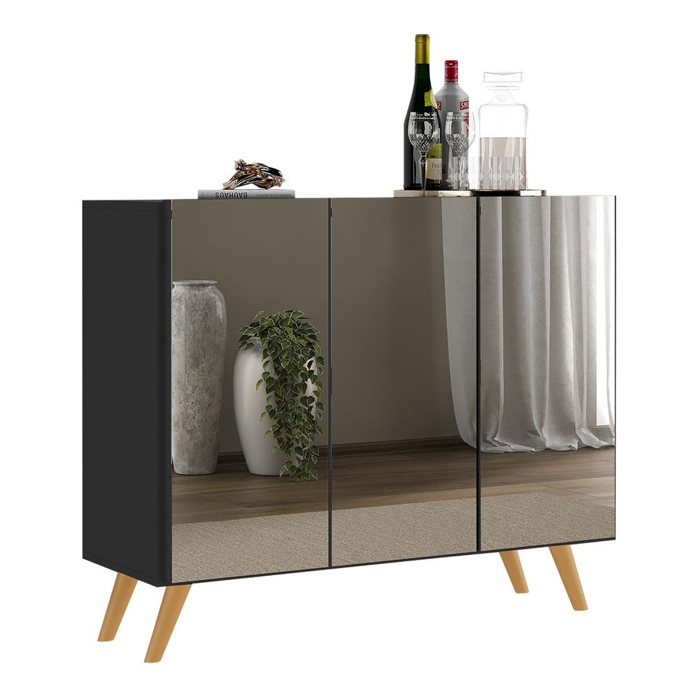 Aparador Buffet 3 Portas com Espelho Retrô Vegas Multimóveis MP1013 Preto/Natural