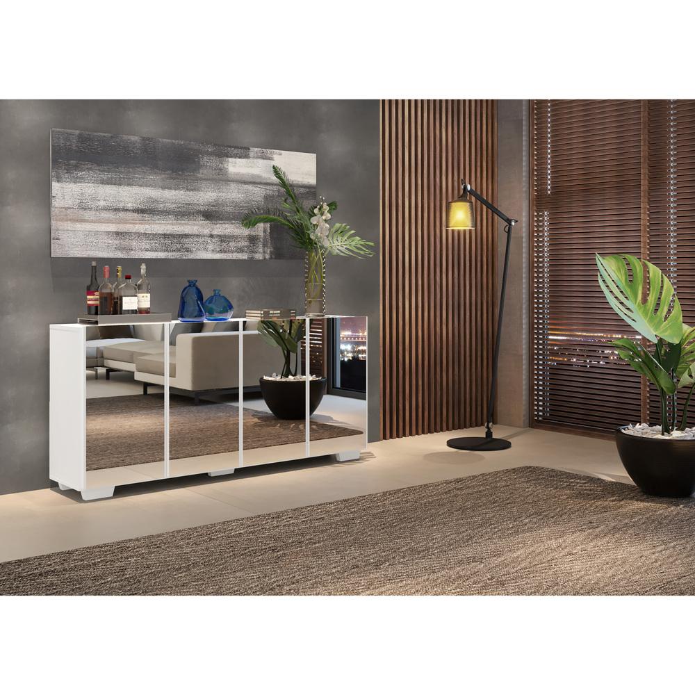 Aparador Buffet 4 Ptas c/ Espelho e Pés Quadrados Vegas Multimóveis Branco